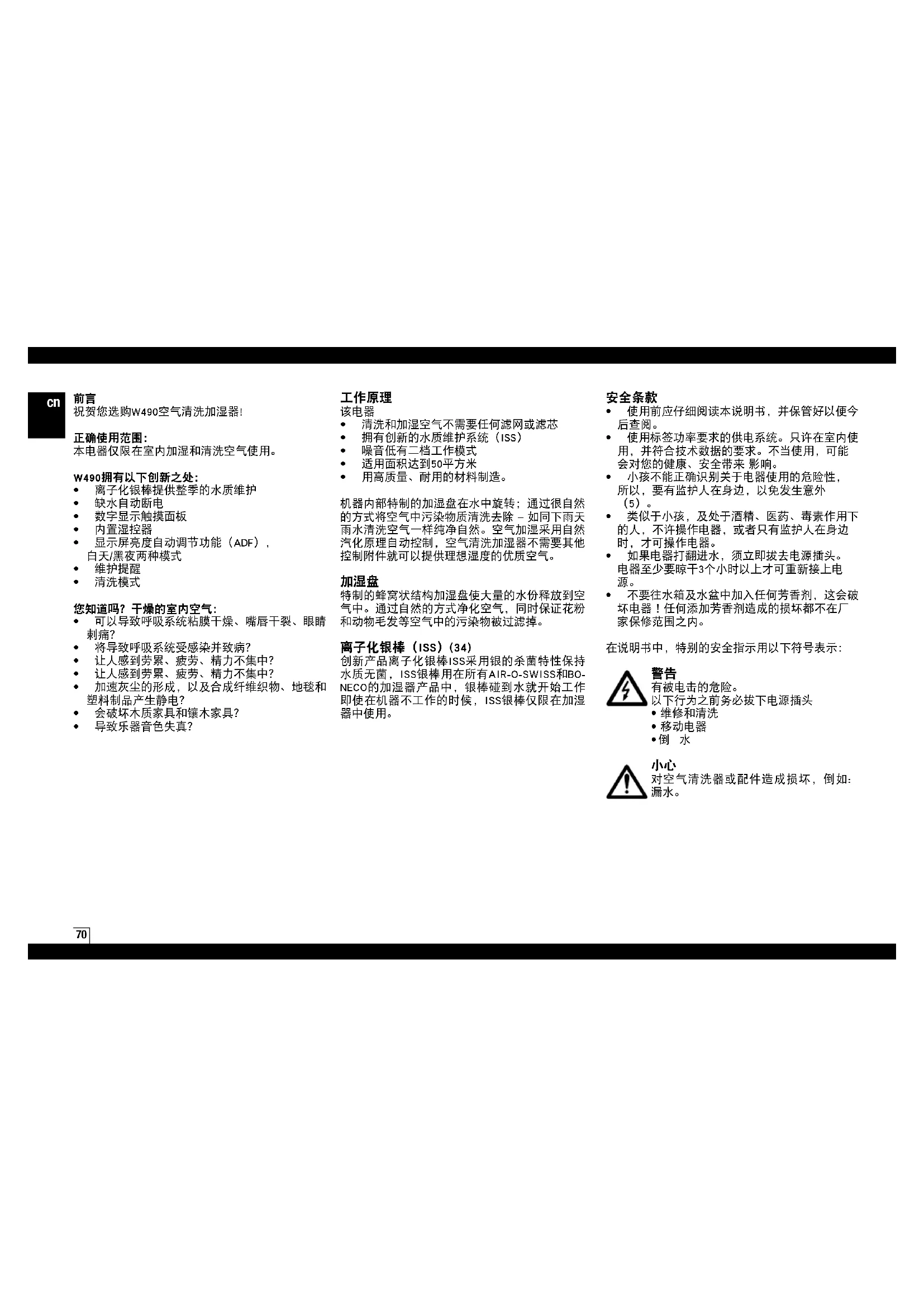 本电器仅限在室内加湿和清洗空气使用。 W490拥有以下创新之处: