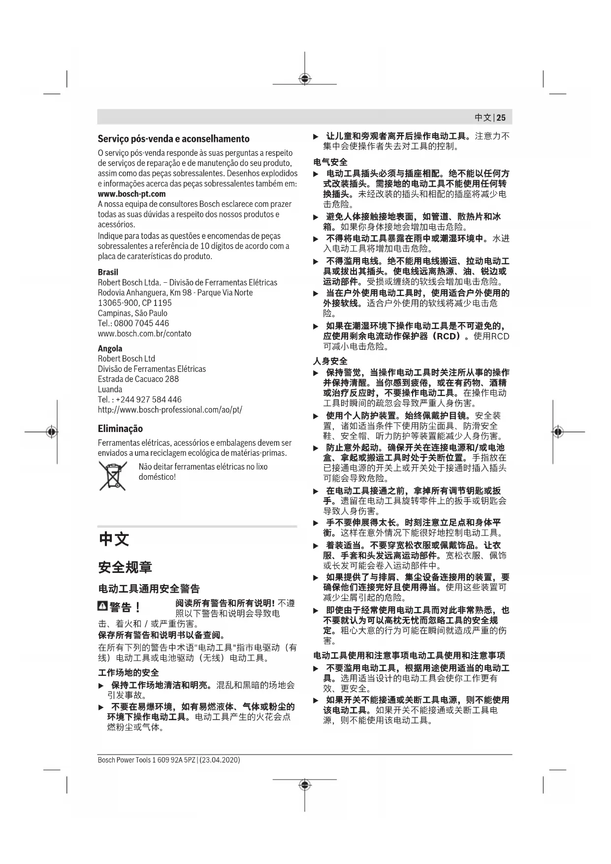 请勿将电动工具扔到生活垃圾中! Bosch Power Tools 1 609 92A 5PZ | (23.04.2020) 产品中有害物质的名称及含量