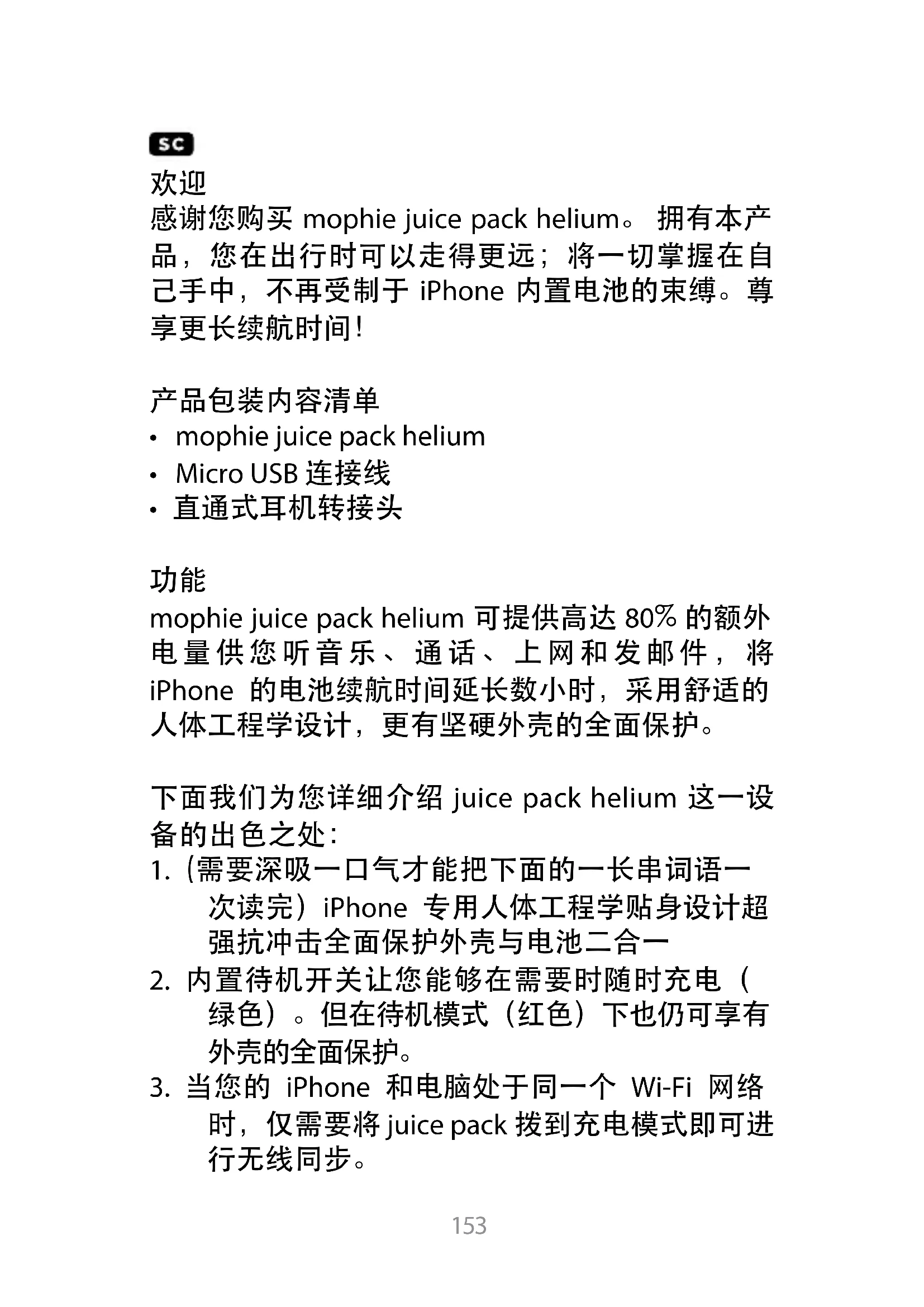 感謝您購買 mophie juice pack helium。您現在將能旅行更遠的距離;自己掌控您的目的地,擺脫iPhone 内置電池的束縛。讓我們獲得充足電力!
