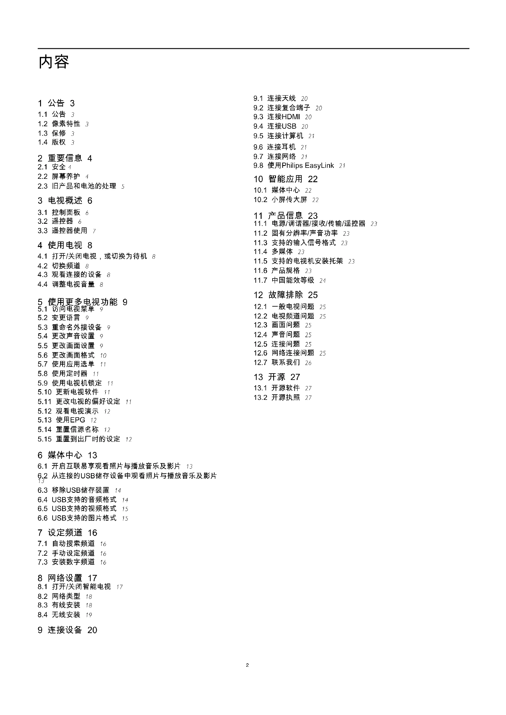 本软件部分版权所有 © The FreeType Project (www.freetype.org)。 HDMI、HDMI 徽标和高清多媒体接口是 HDMI Licensing LLC 的商标或注册商标。 本产品经过杜比实验室的许可而制造。Dolby,Dolby Audio和双D符号是杜比实验室的注册商标。 Philips 和Philips 盾牌图形是皇家飞利浦有限公司的注册商 标,其使用需遵循皇家飞利浦有限公司的许可。