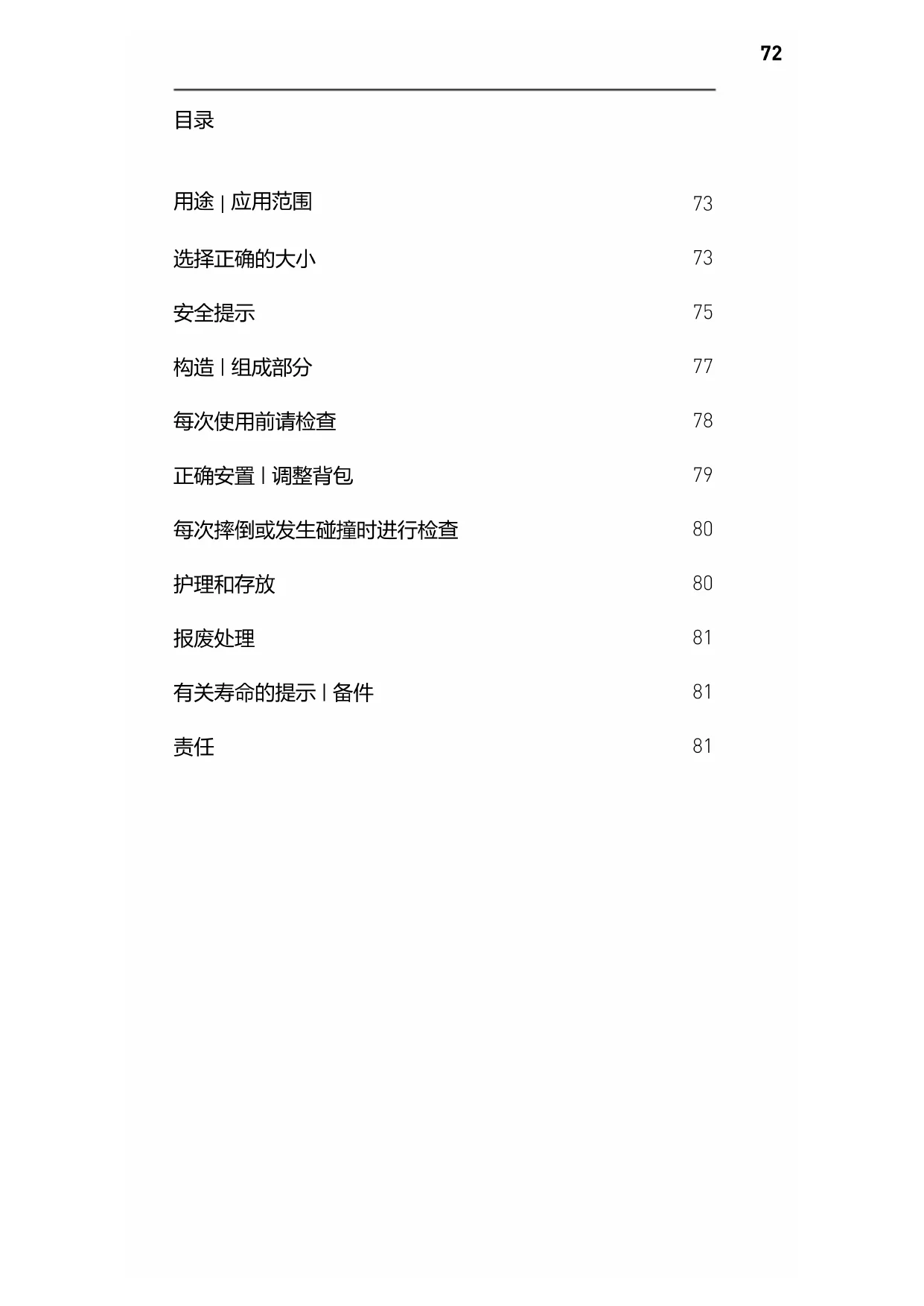 错了尺寸的背包而已经造成或即将造成的伤害概不承担任 何责任。74