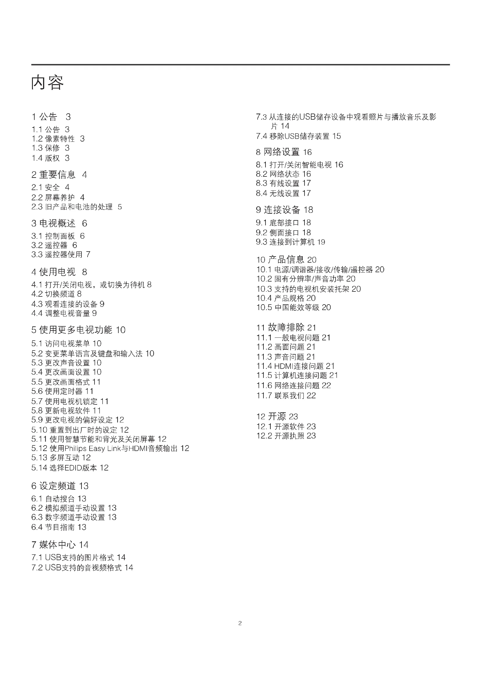 在使用电视机之前,请阅读和理解所有说明。 因未遵守说明而造成的损坏不在保修范围内。 本产品采用可回收利用的高性能材料和组件制造而