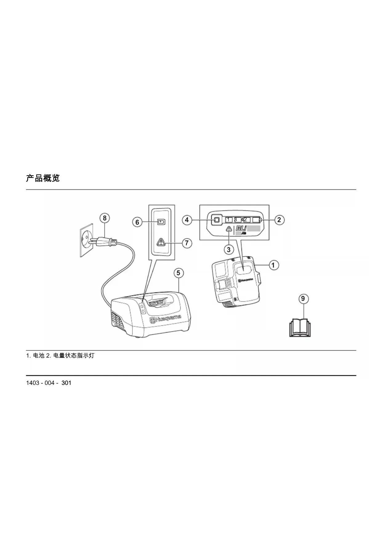 只能使用电池充电器 QC330 或 QC500 为 Husqvarna 的原装电 池充电。电池通过软件进行加