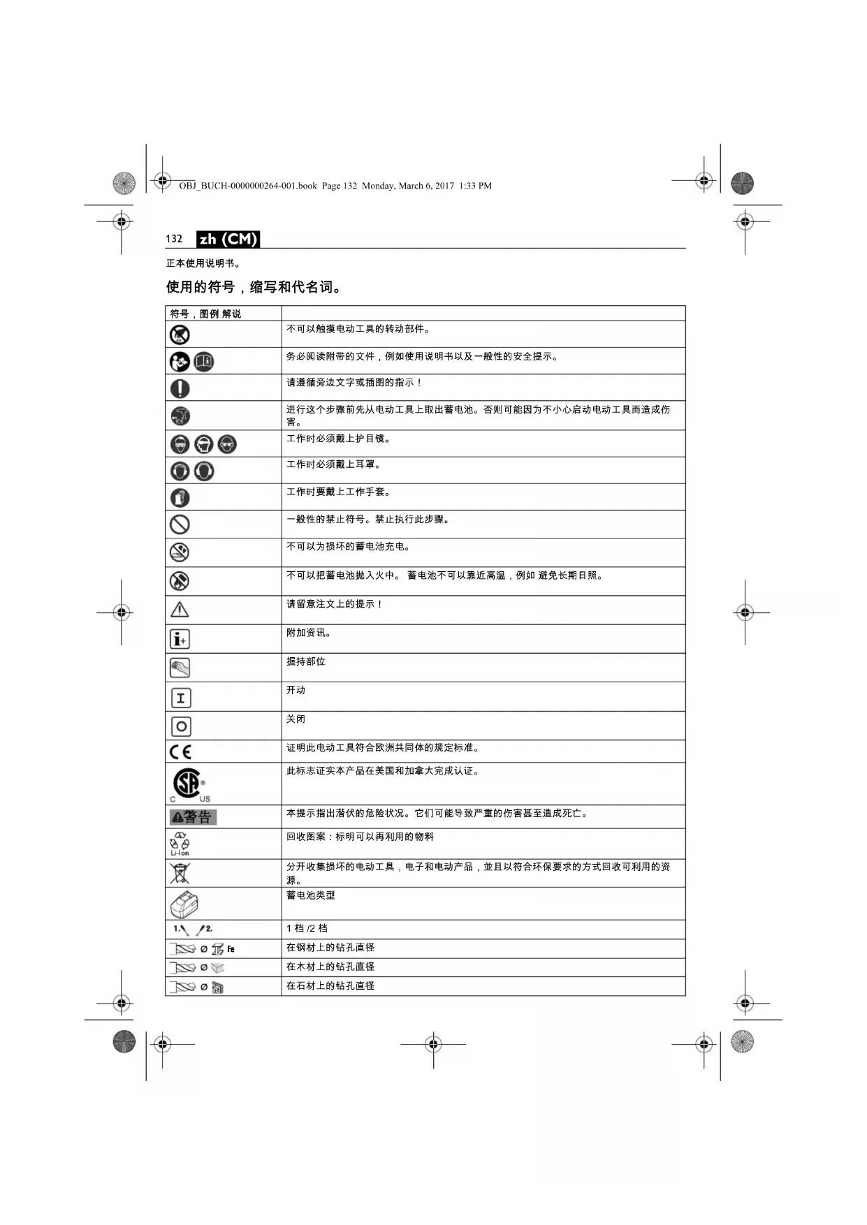 后,才可以使用本电动工具。妥善保存上述文件以方便日后查阅。赠送或贩卖本电动工具时,务必把这些文件转交给受赠者或买主。