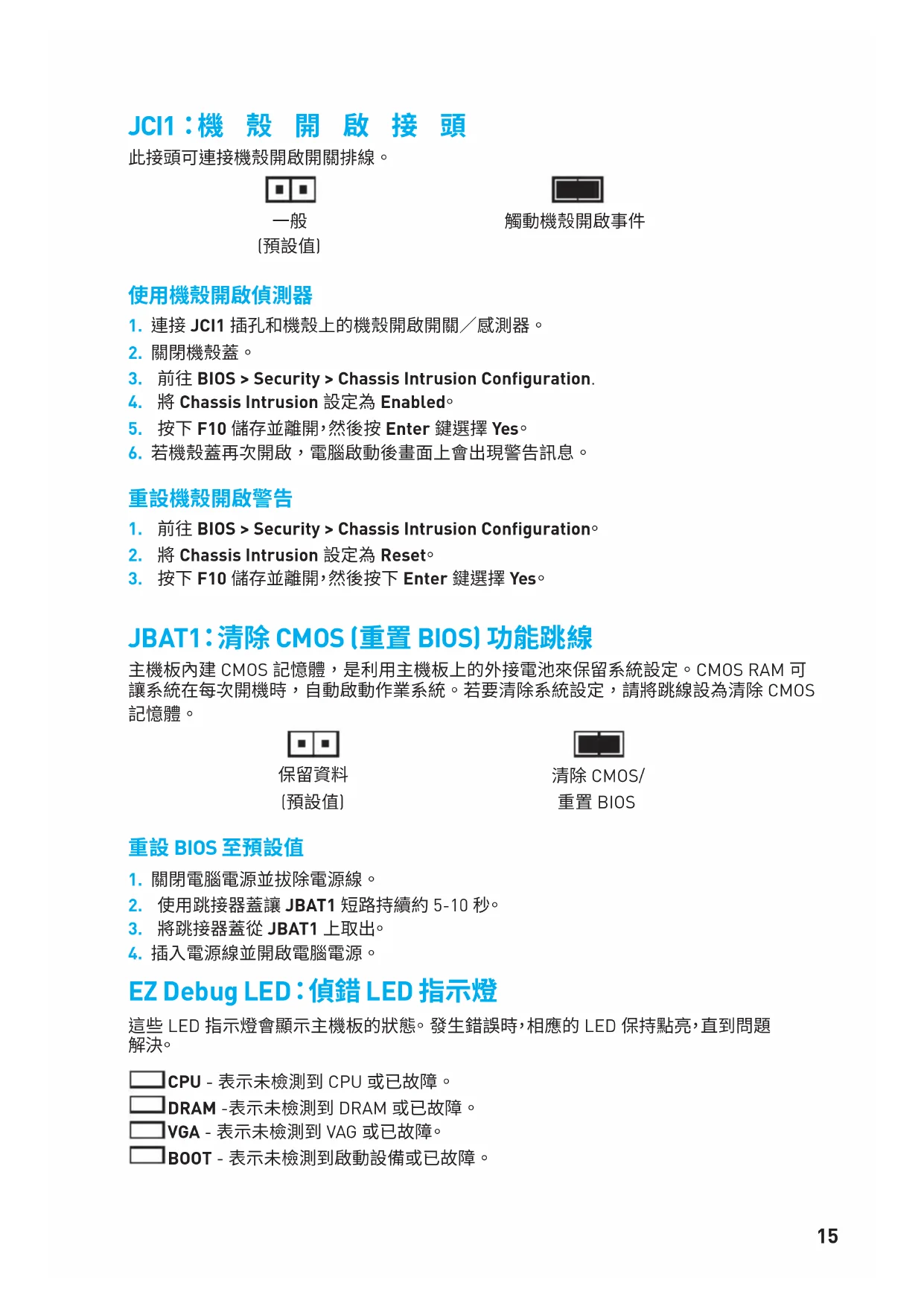 清除 CMOS/ 重置 BIOS 重設 BIOS 至預設值