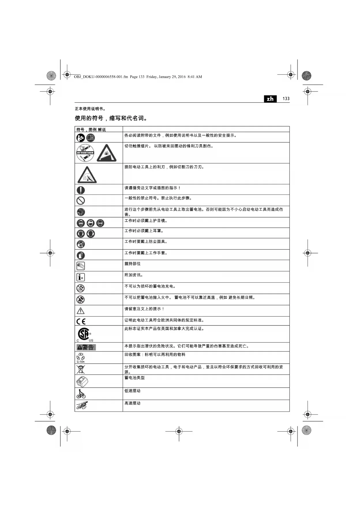 振荡发射值根据 EN 60745 ( 三向矢量和 )m, s, kg, A, mm, V, W, Hz, N, °C, dB, min, m/s 米,秒,公斤,安培,毫米 , 伏特 , 瓦 ,赫兹 , 牛顿 , 摄氏 ,分贝 , 分 , 米 / 秒 国际性单位系统 SI 中的标准单位和引用单位。OBJ_DOKU-0000006558-001.fm Page 134 Friday, January 29, 2016 8:41 AM135