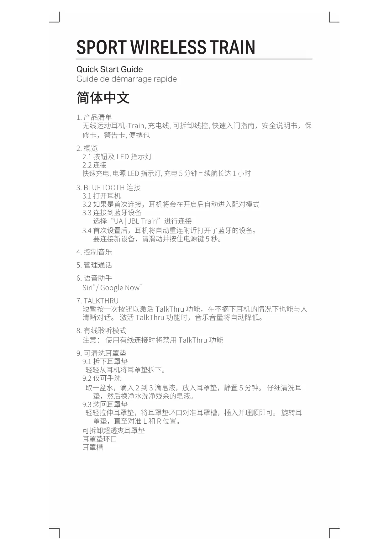 免费查找设备手册 Under Armour Sport Wireless Train JBL PDF格式.