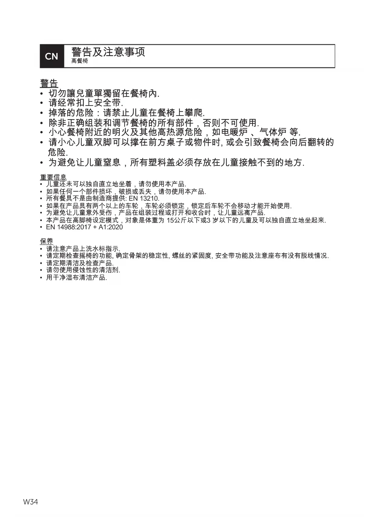 - 除非正确组装和调节餐椅的所有部件,否则不可使用.