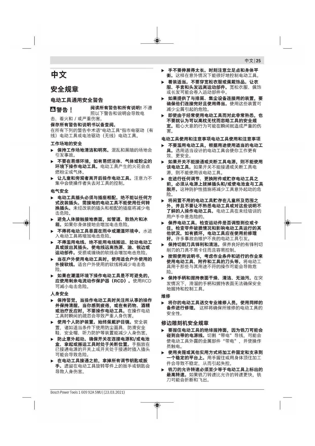 /II 所有参数适用于230伏的额定电压[U],对于其他不同的电压 和国际规格,数据有可能不同。 1 609 92A 5MU | (23.03.2021) Bosch Power Tools中文 | 27