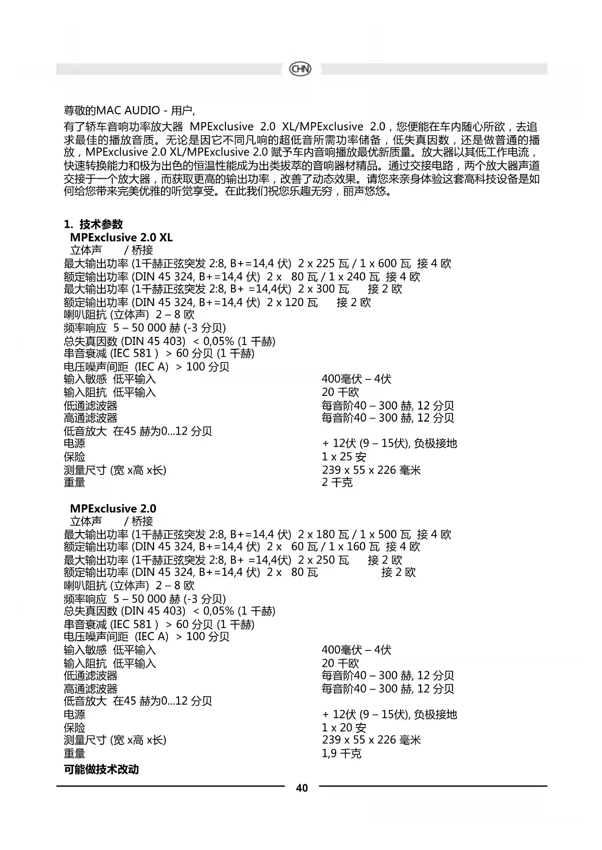 | 技术特性 | MAC AUDIO MPExclusive 1.0 XL 接收器 |
