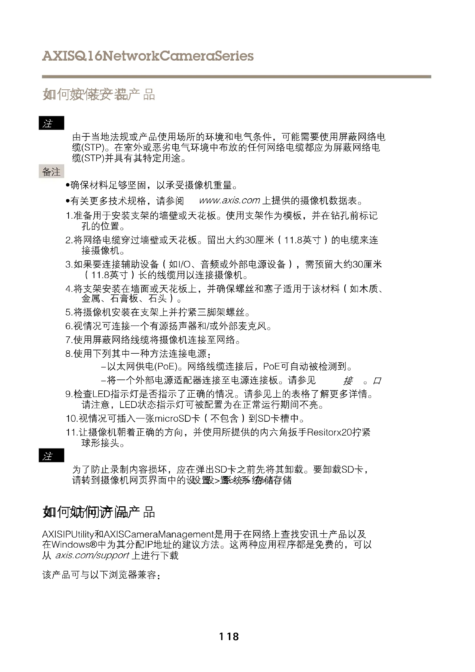 该产品可与以下浏览器兼容: 118AXISQ16NetworkCameraSeries