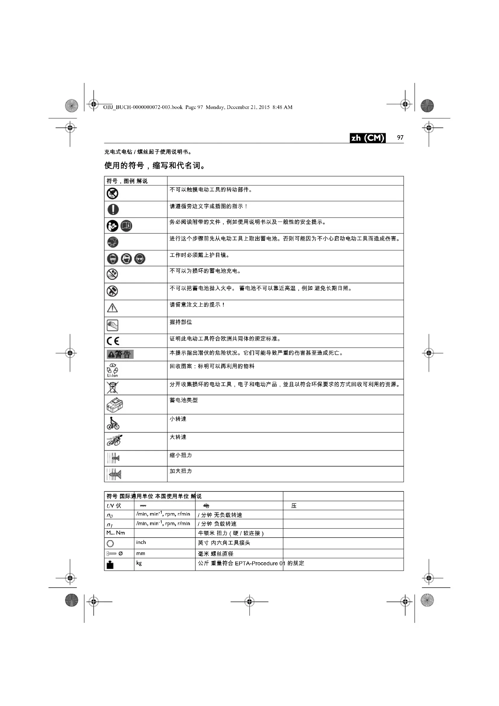 米,秒,公斤,安培,毫米,伏特,瓦,赫兹,牛顿,摄氏,分贝, 分,米/秒 国际性单位系统 SI 中的标准单位和引用单位。符号 国际通用单位 本国使用单位 解说OBJ_BUCH-0000000072-003.book Page 98 Monday, December 21, 2015 8:48 AM99 zh (CM)
