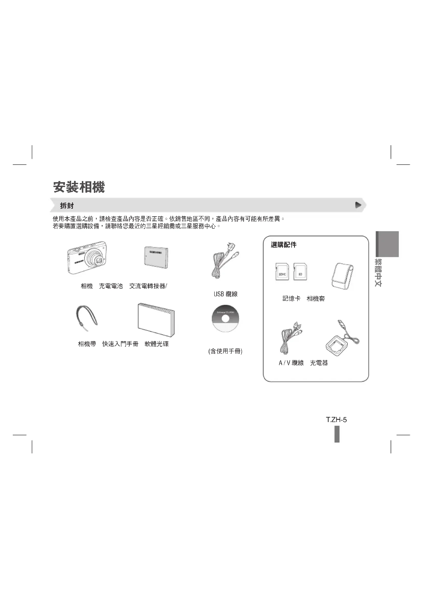 使用本產品之前,請檢查產品內容是否正確。依銷售地區不同,產品內容有可能有所差異。…若要購置選購設備,請聯絡您最近的三星經銷商或三星服務中心。