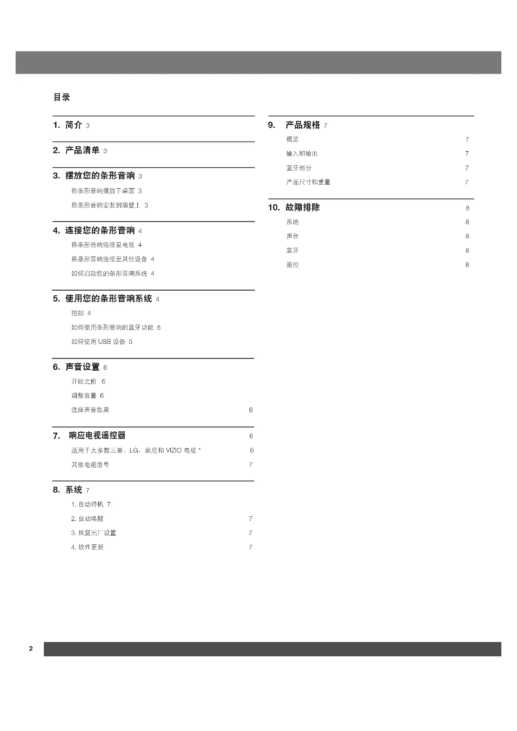 控制 4 如何使用条形音响的蓝牙功能 5 如何使用 USB 设备 5