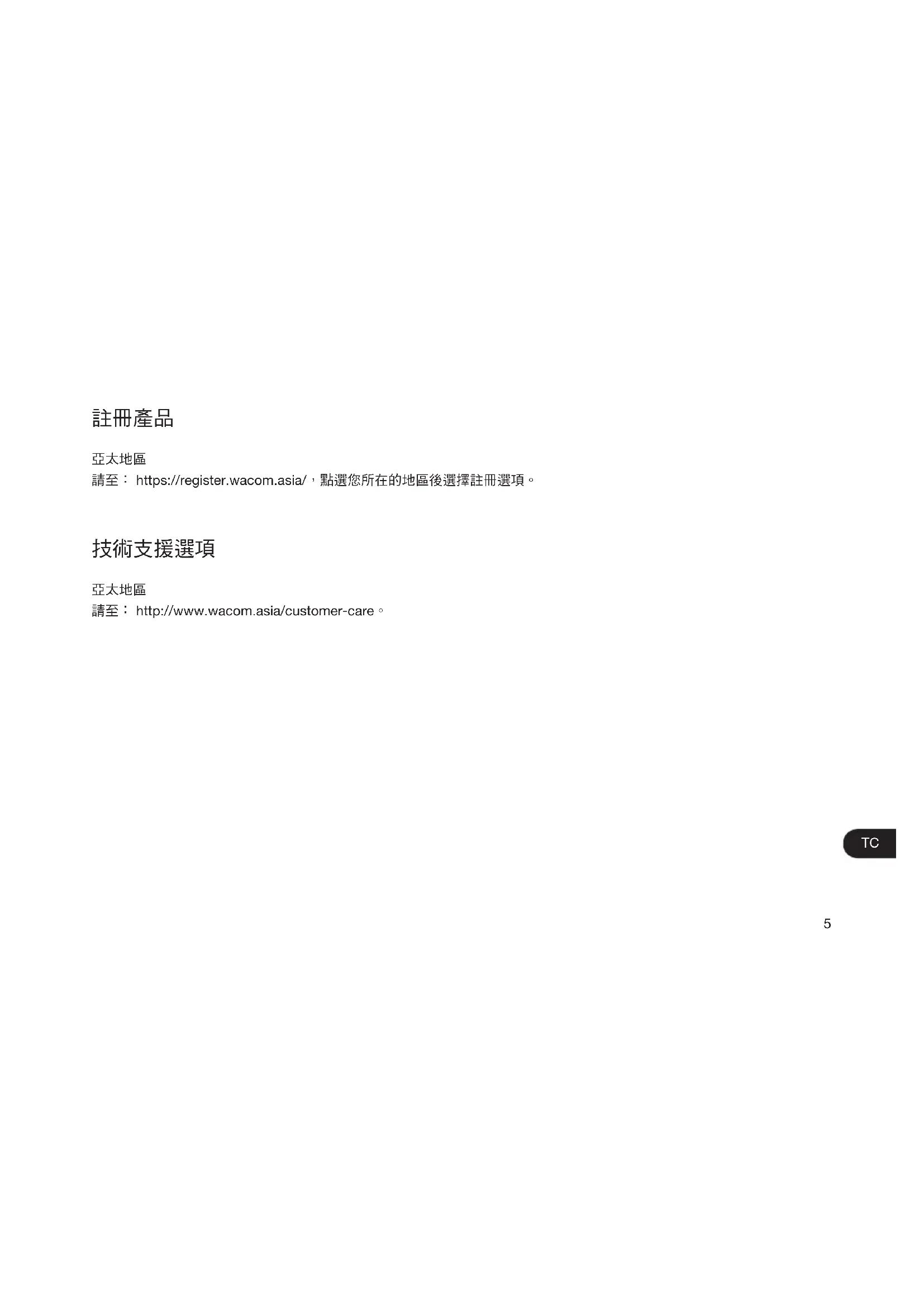 本「有限保固」受日本法律管轄,如有變更恕不另行通知。 保固服務 /Wacom 亞 太 技 術 支 援(日本、中 國、香 港 及 中 東 國 家 除 外) 亞太保固說明及產品登錄詳情可於線上查詢 : http://www.wacom.asia/customer-care 在東南亞、南亞、大洋洲及台灣,如需技術支援或保固服務,請與 Wacom 客