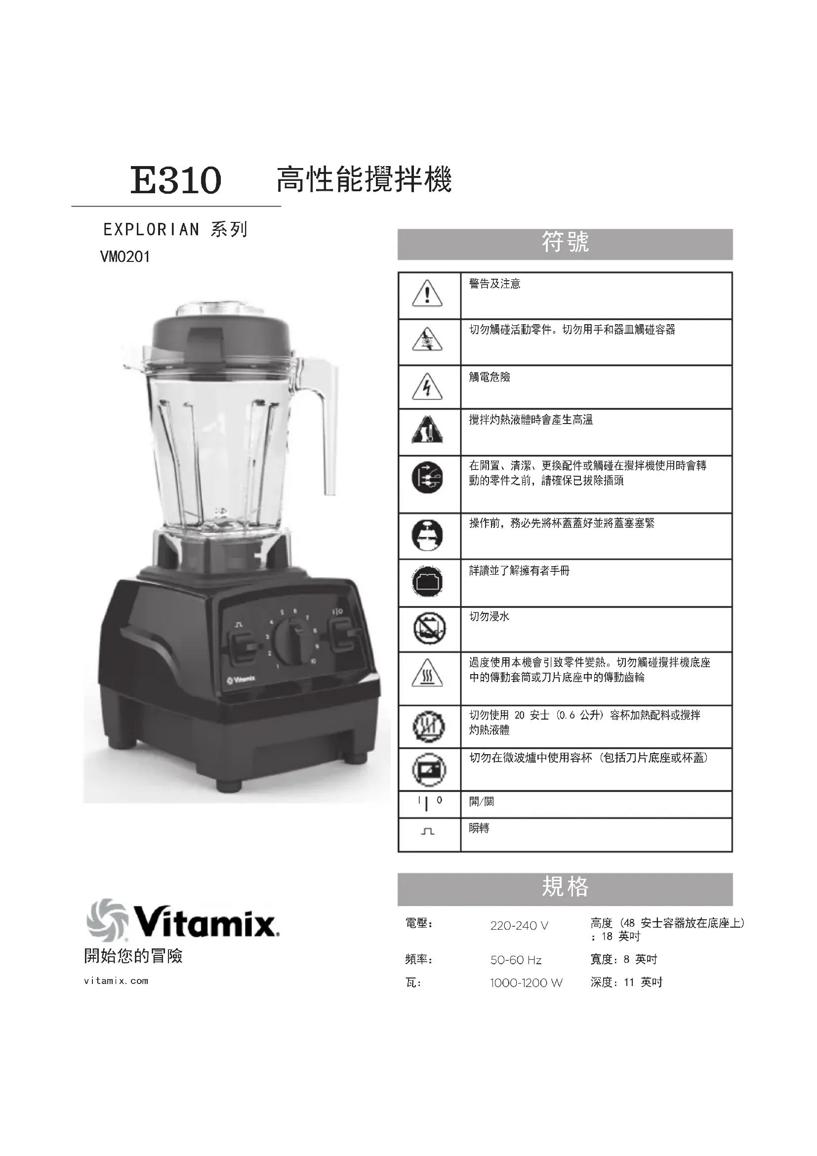 免费查找设备手册 Explorian E310 Vitamix PDF格式.