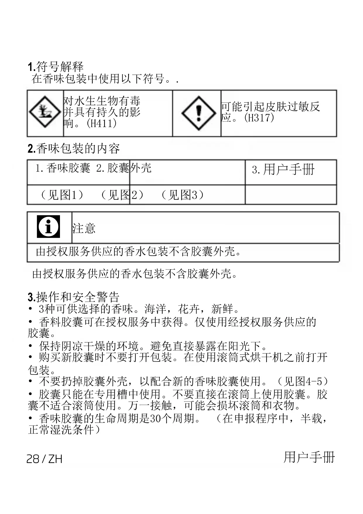 - 不要扔掉香味手册,并将其与你的干衣机用户手册保存在一 起。30 / ZH