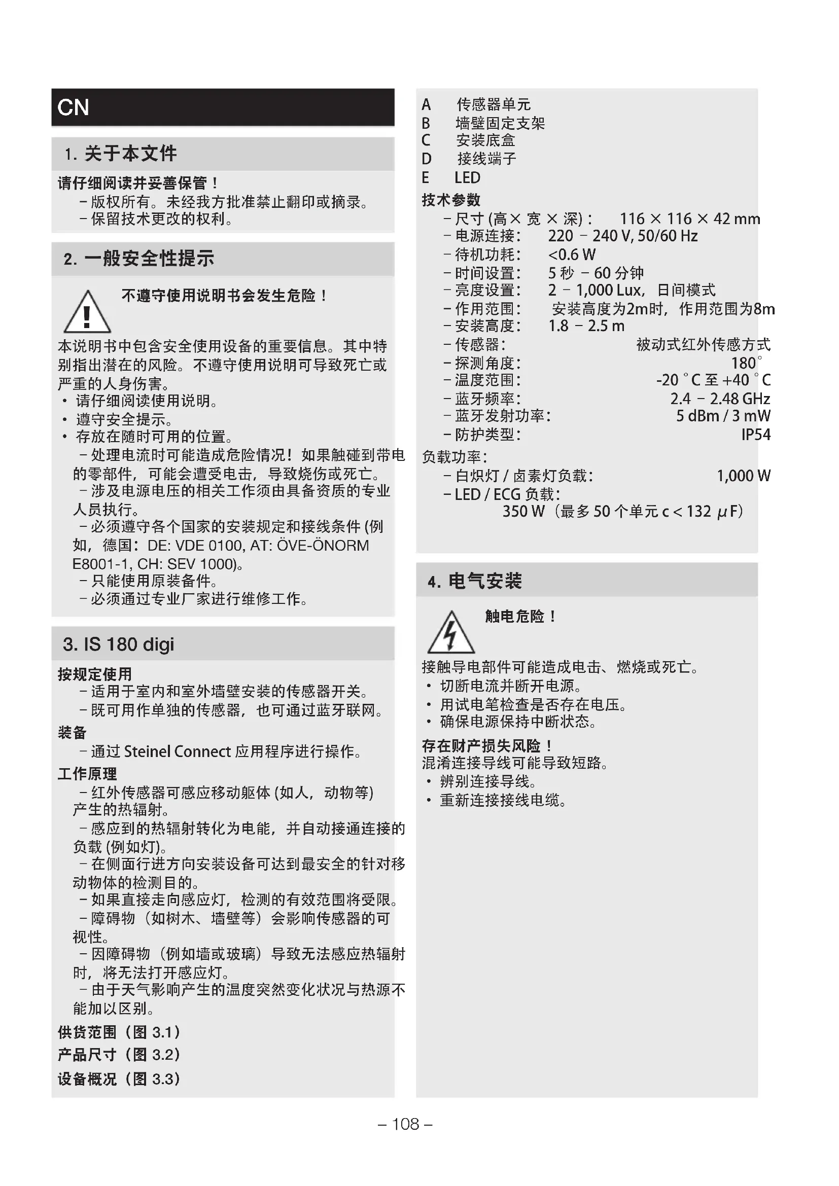 下载您的设备说明 运动探测器 免费PDF格式!查找您的手册 IS 180 Digi - STEINEL 并重新掌握您的电子设备。本页发布了使用您的设备所需的所有文档。 IS 180 Digi 品牌 STEINEL.