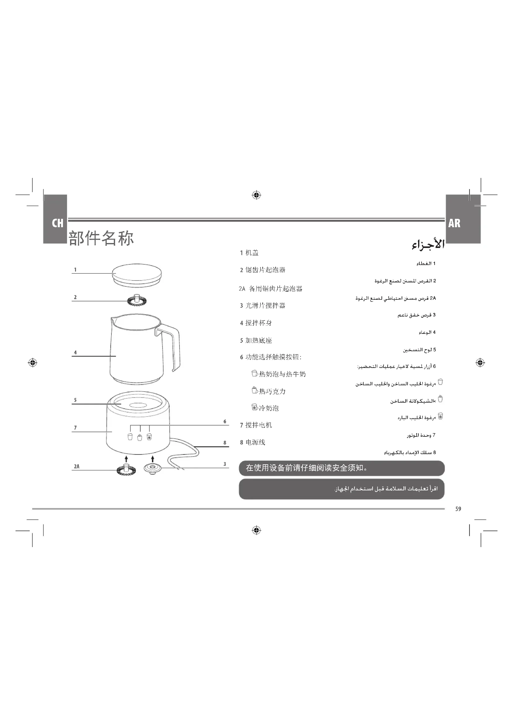 7 搅拌电机 8 电源线 在使用设备前请仔细阅读安全须知。60 CHAR