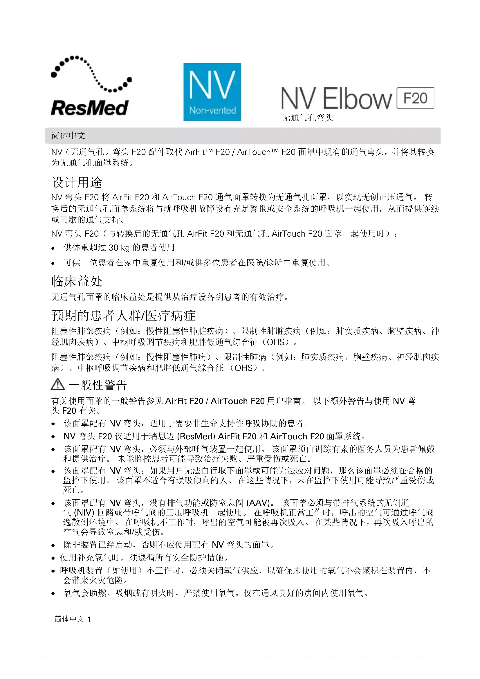免费查找设备手册 NV Elbow F20 ResMed PDF格式.