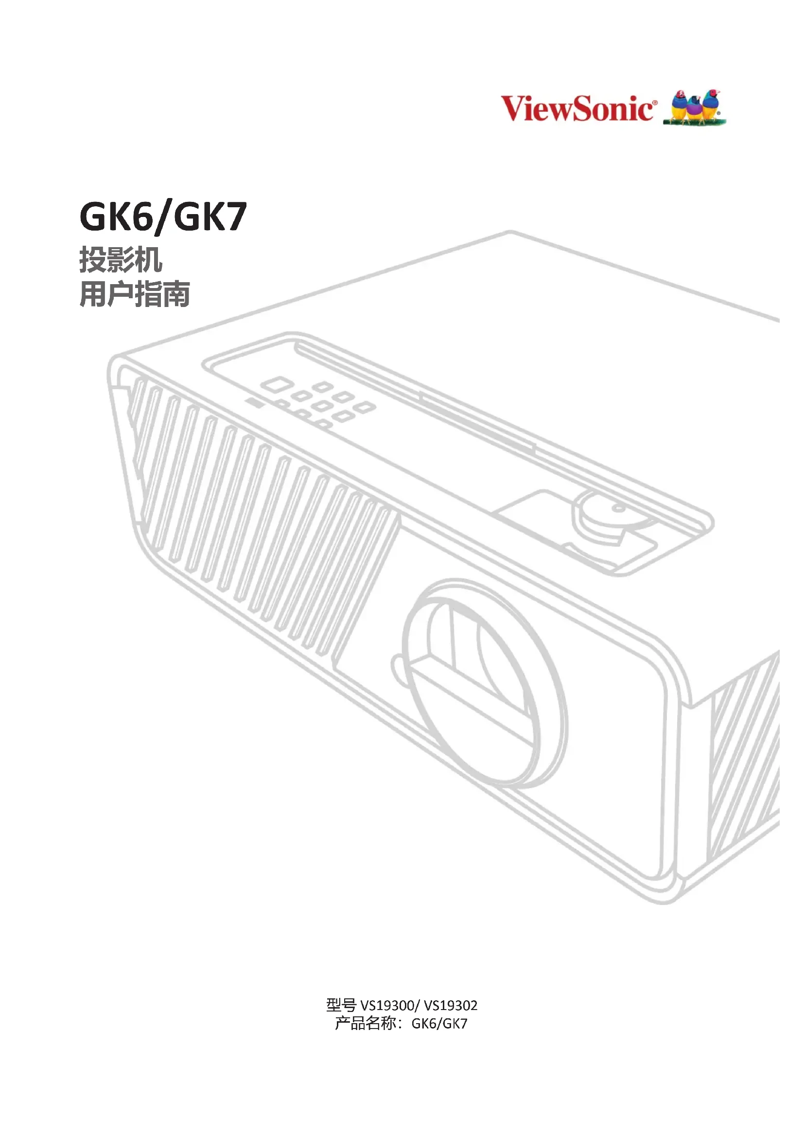 型号 VS19300/ VS19302 产品名称:GK6/GK7ii 感谢您选择 ViewSonic® 作为全球领先的视觉解决方案提供商,ViewSonic® 一直致力于超越全球用户对 技术演进、创新和简化的期望。在 ViewSonic®,我们坚信,我们的产品有能力 对世界做出积极的影响,我们有信心通过您选择的 ViewSonic® 产品为您提供