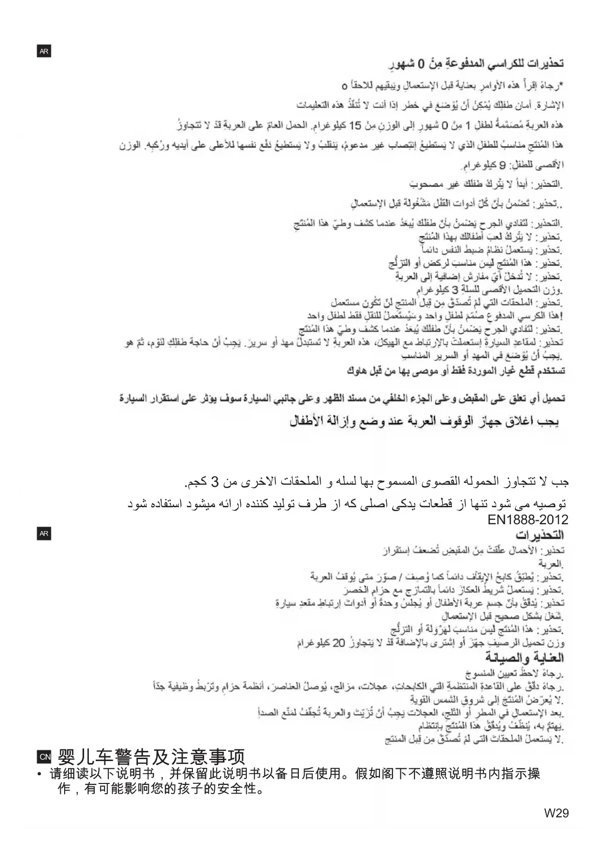 - 警告: 此嬰兒車不適合用於奔跑及滑行.W31