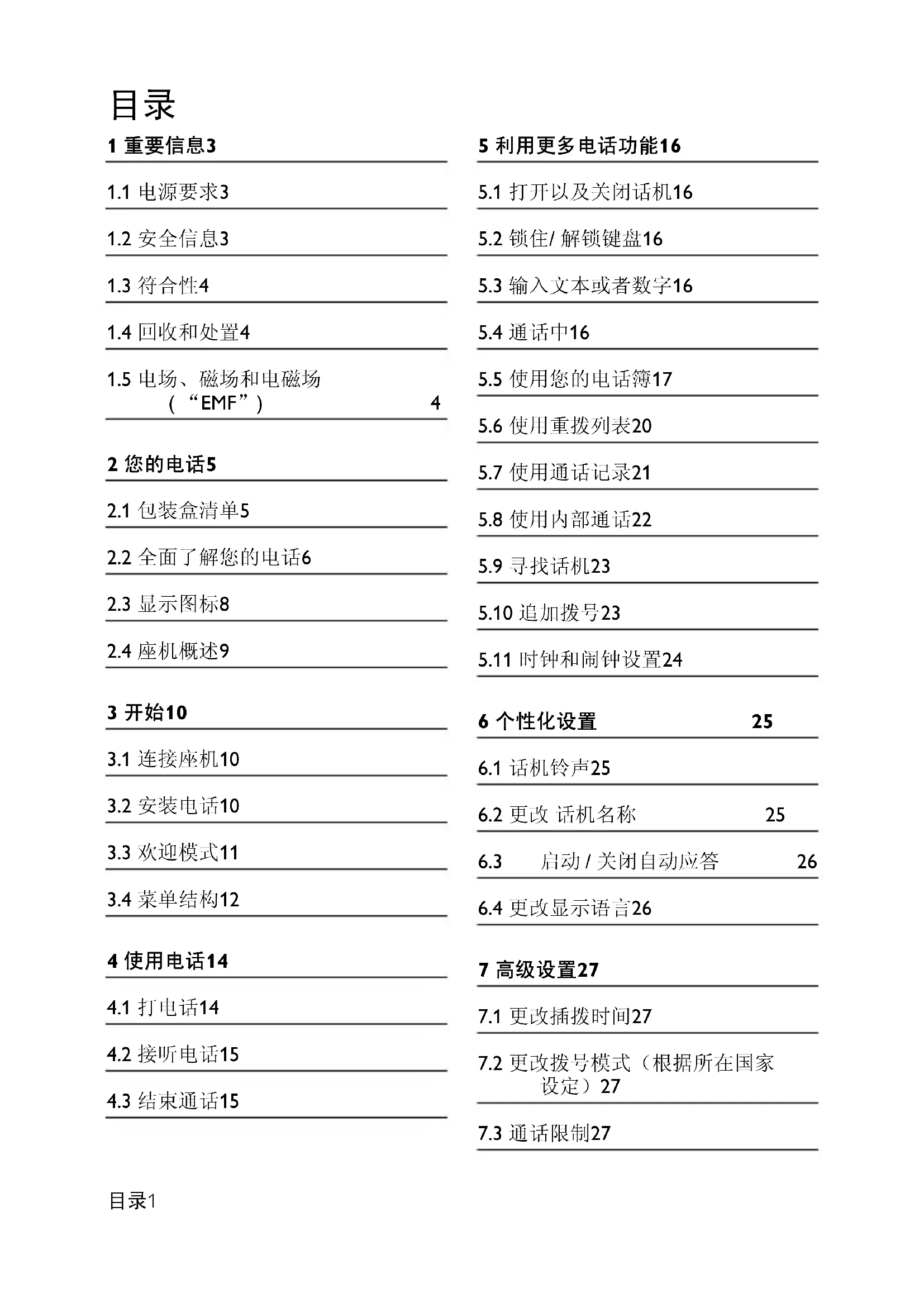 EMF 和安全标准,使得飞利浦可 以 预先在其产品中早期进行标 准化整合。您的电话 5 2 您的电话 恭贺您购买飞利浦产品,欢迎来到飞利浦世界! 为了全面享受飞利浦提供的支持,请到下列网址登记您的产品: www.philips.com/welcome