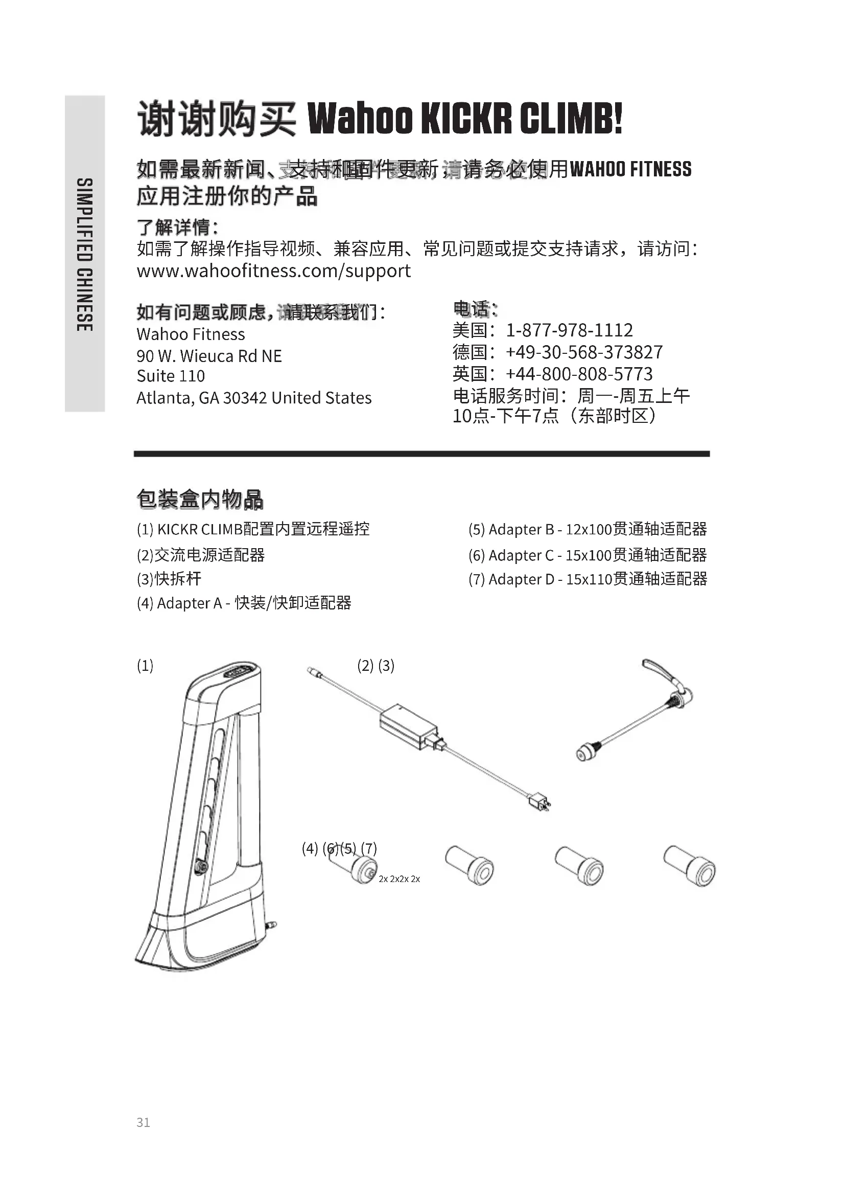 用户手册 Kickr Climb Wahoo