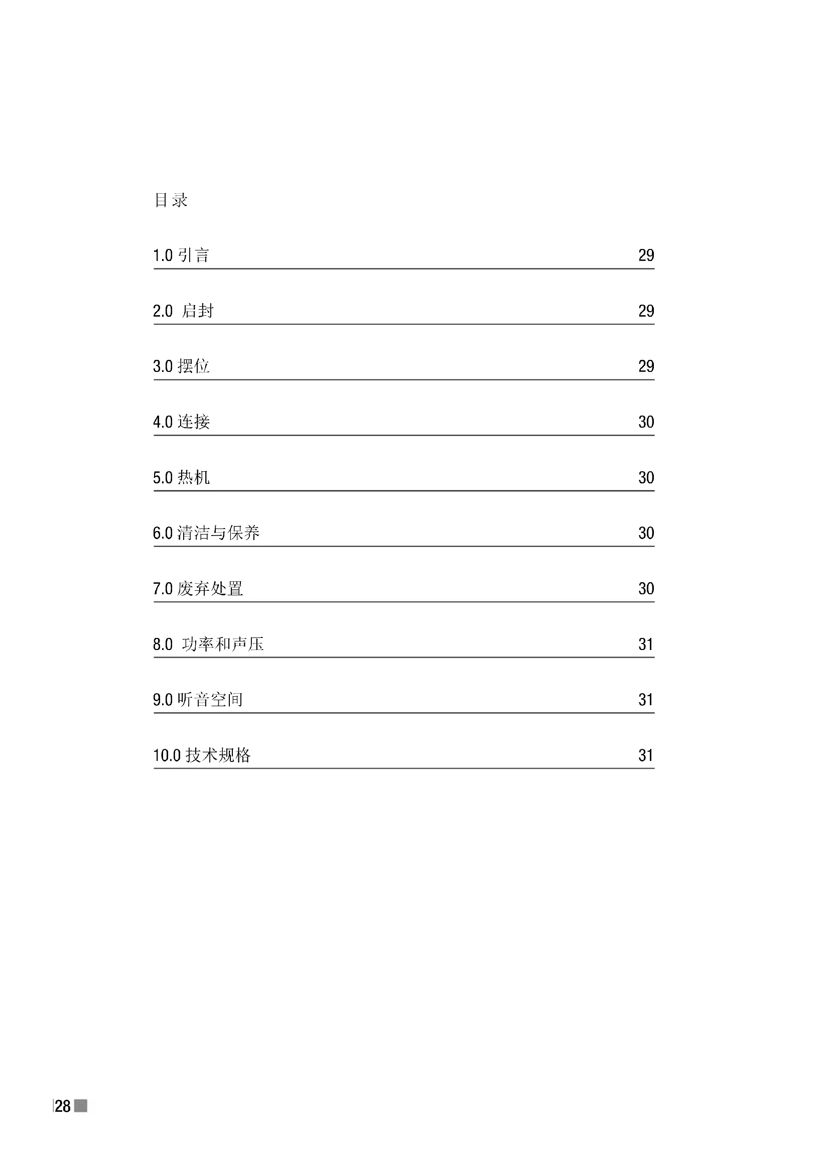 就像机械系统需要试运行一样,音箱也需要一段热机时间。新购音箱在初期使 用过程中,音质会逐步提高。热机时间的长短主要取决于使用次数和播放音 量,但至少需播放100个小时后方可达到最佳性能。与其他机械系统不同,规范 而有规律地使用音箱甚至还能延长其使用寿命。