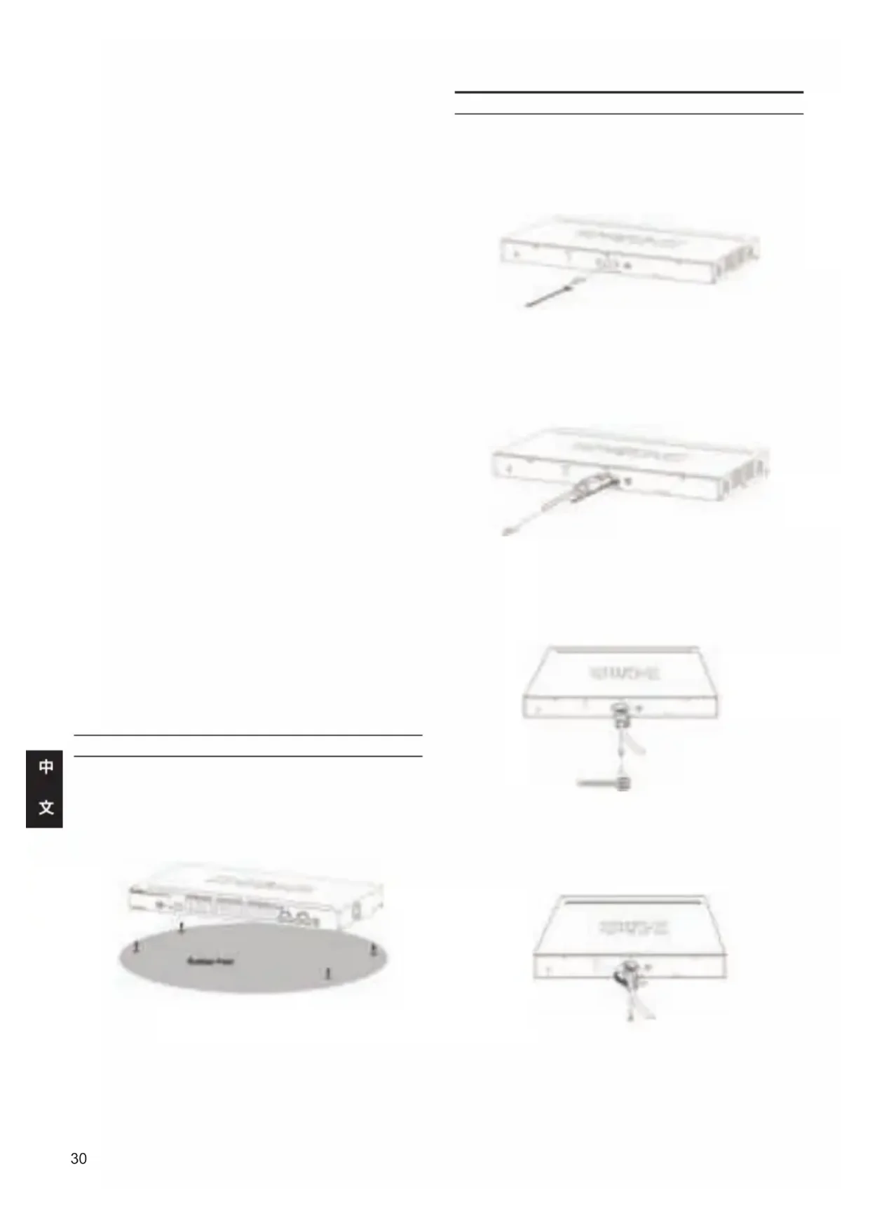 本指南提供一步一步的指示設定D-Link SmartPro交換器與關於保固,安全,監管和環境聲明。請注意,您所購買的型號可能會與這些圖中所顯示略有不同。更多關於您的交換器細節資訊、配件、設定網路連接與技術規格,請參閱產品包裝中的使用手冊。 步驟 1 – 打開包裝 小心打開包裝後,請參閱包裝內容物資料,確認所有品項數量正確以及均正常沒有損壞,假如有任何品項遺失或損壞,請聯絡當地的零售商更換。- 一台D-Link SmartPro交換器- 機架固定架- 橡膠腳墊- 電源線- 一個Console線- 電源線夾- 使用手冊光碟片(包含DNA (D-Link Network Assistant) program)- 多國語言版設定指南 步驟2 – 交換器安裝 為了讓交換器安裝與運作安全,建議您以下幾件事情:•檢查電源線的外表,並確認AC電源連接插頭是安全的。•請確認交換器周圍為適當的通風散熱環境。•不要放重物在交換器上。 當安裝交換器在桌上或架子上,產品包裝內的橡膠腳墊請安裝至交換器底部的四個角落,讓交換器與桌面有適當的通風空間。圖 1. 安裝橡膠腳墊 為了防止意外移除AC電源線,建議電源線夾與電源線安裝在一起。 1. 用粗糙的一面朝下,將固定帶插入到下方的電源插座孔圖 2-1. 將固定帶插入交換器2. 將交流電源線插入電源插座。圖 2-2. 將電源線連接至交換器