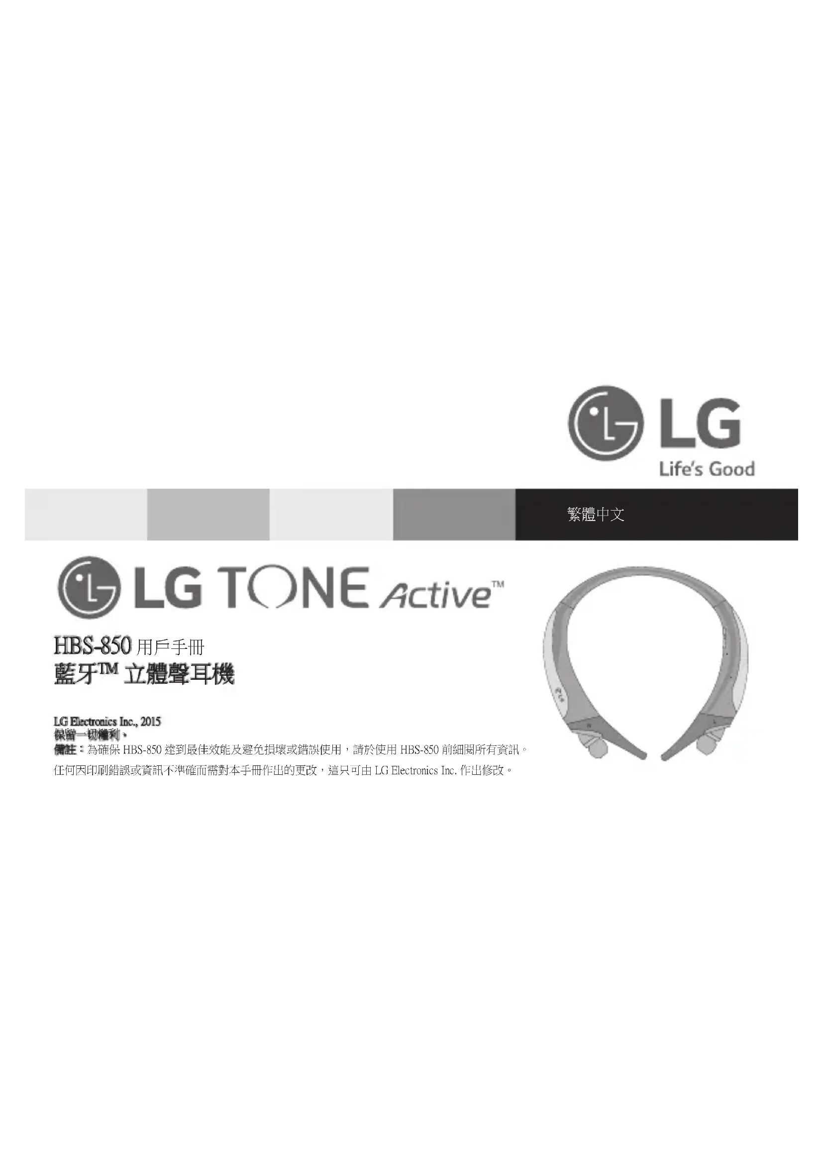 備註:為確保 HBS-850 達到最佳效能及避免損壞或錯誤使用,請於使用 HBS-850 前細閱所有資訊。 任何因印刷錯誤或資訊不準確而需對本手冊作出的更改,這只可由 LG Electronics Inc. 作出修改。 HBS-850 用戶手冊