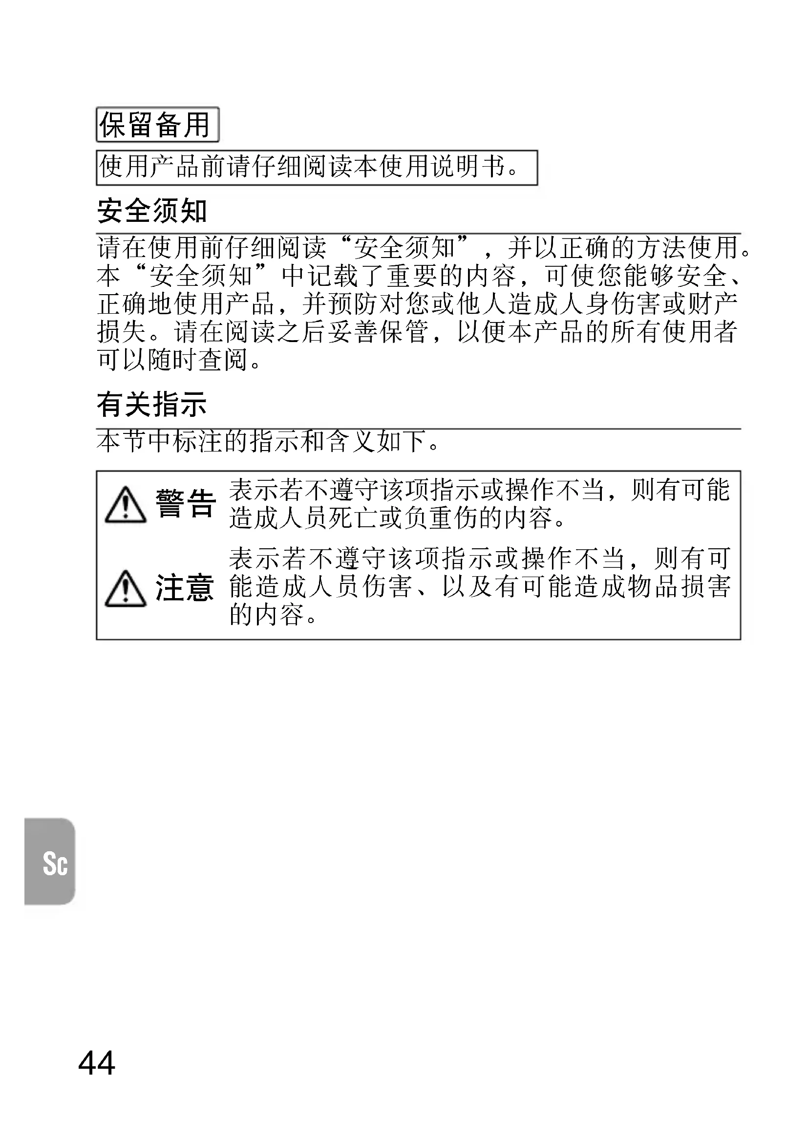 使用产品前请仔细阅读本使用说明书。 保留备用Sc