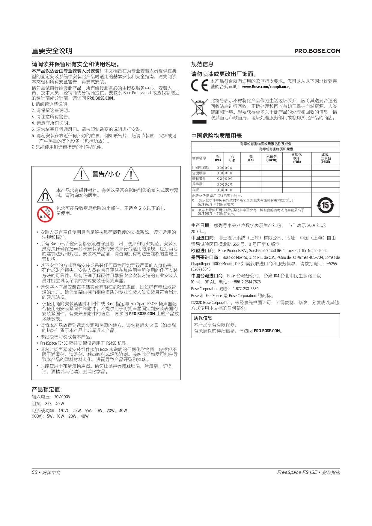 用户手册 FreeSpace FS4SE BOSE