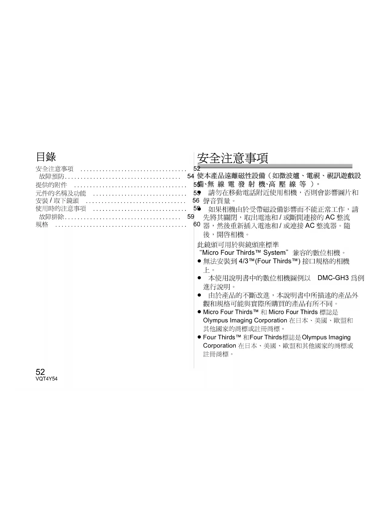 Micro Four Thirds™ 和 Micro Four Thirds 標誌是 Olympus Imaging Corporation 在日本、美國、歐盟和 其他國家的商標或註冊商標。 ≥ Four Thirds™ 和Four Thirds標誌是Olympus Imaging Corporation 在日本、美國、歐盟和其他國家的商標或