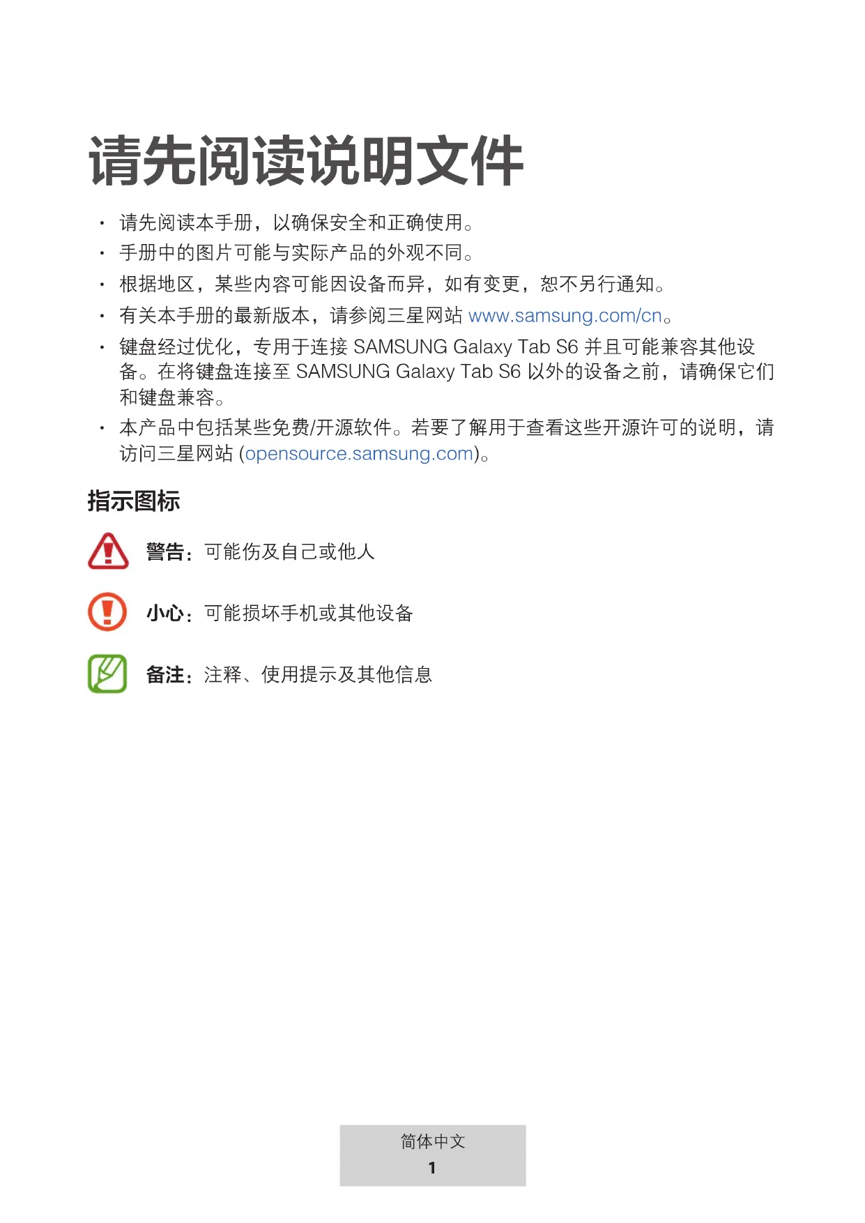 键盘经过优化,专用于连接 SAMSUNG Galaxy Tab S6 并且可能兼容其他设 备。在将键盘连接至 SAMSUNG Galaxy Tab S6 以外的设备之前,请确保它们