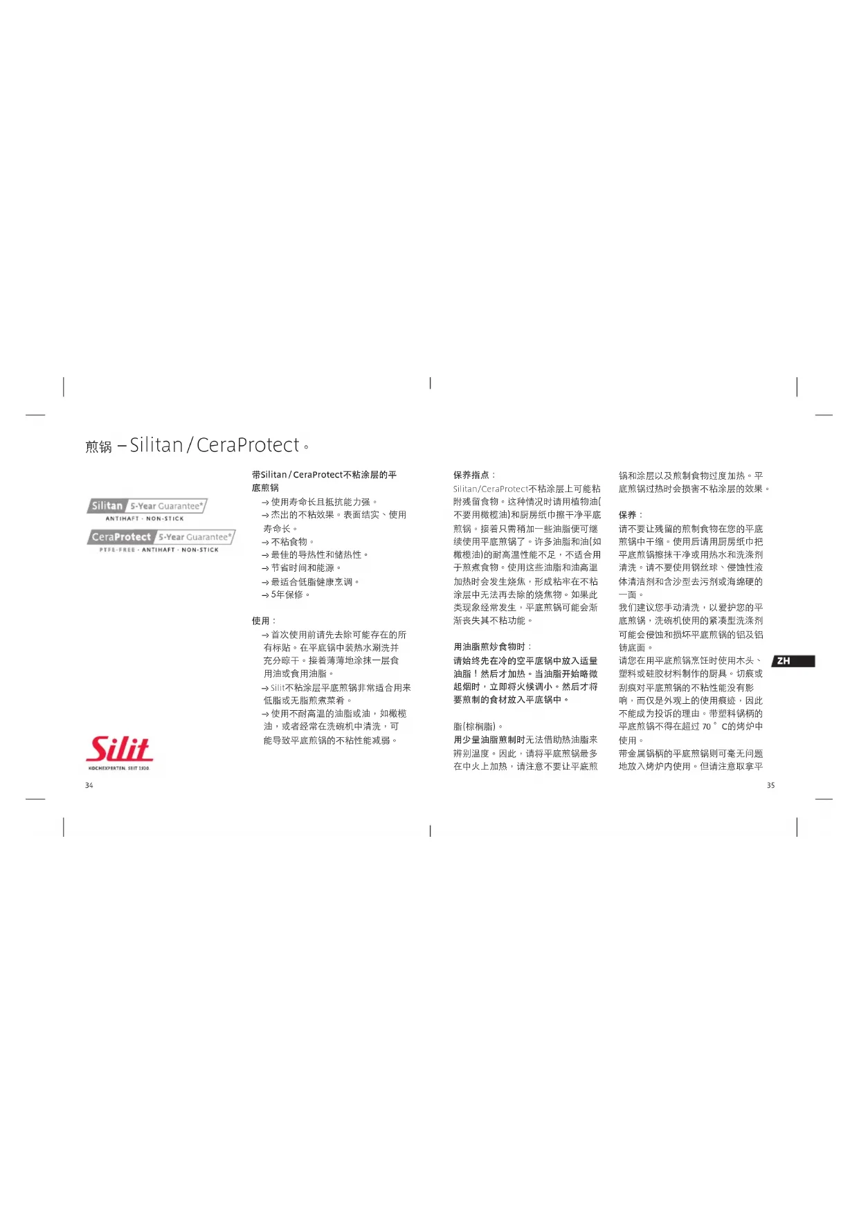 带金属锅柄的平底煎锅则可毫无问题 地放入烤炉内使用。但请注意取拿平 煎锅 – Silitan / CeraProtect。ZH