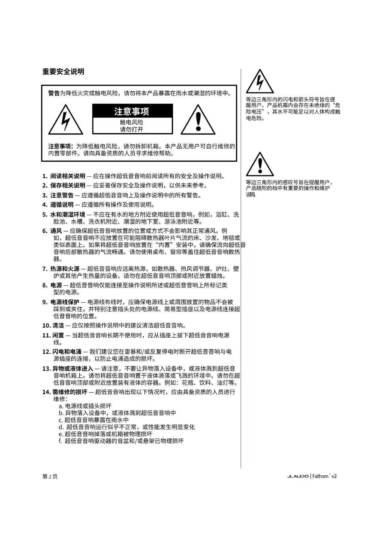 用户手册 Fathom f112 V2 JL Audio
