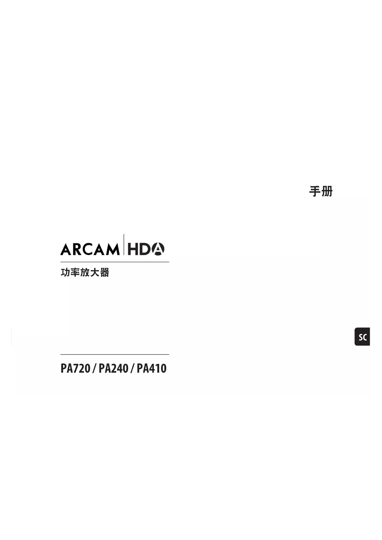 ...购买 Arcam PA720, PA240 or PA410功率放大器。 四十多年以来,Arcam 一直致力于生产品质卓越的专业音响产品,新款 PA720, PA240 and PA410 功率放 大器是屡获殊荣的高保真 (HiFi) 广泛产品系列的最新成员。Arcam 是英国最受推崇的音频设备企业之 一,而 HDA 系列的设计吸取了其所有的设计经验,造就了具有最佳性能的 Arcam 多通道功率放大器产品 系列,依托精心设计和制造给您带来多年的听觉享受。 本手册是 PA720, PA240 and PA410 的安装和使用指南,包含有关这类产品更先进功能的信息。请参考下一 页显示的目录列表转到您想要了解的章节。 我们希望该产品能够给您带来多年的无故障操作体验。如果您的产品发生任何故障(这种情况很罕见) ,或者您只是想要了解有关 Arcam 产品的更多信息,我们的经销商网络将很乐意为您效劳。您也可以通 过 Arcam 网站 www.arcam.co.uk 了解更多信息。 PA720, PA240 and PA410 研发团队SC-3