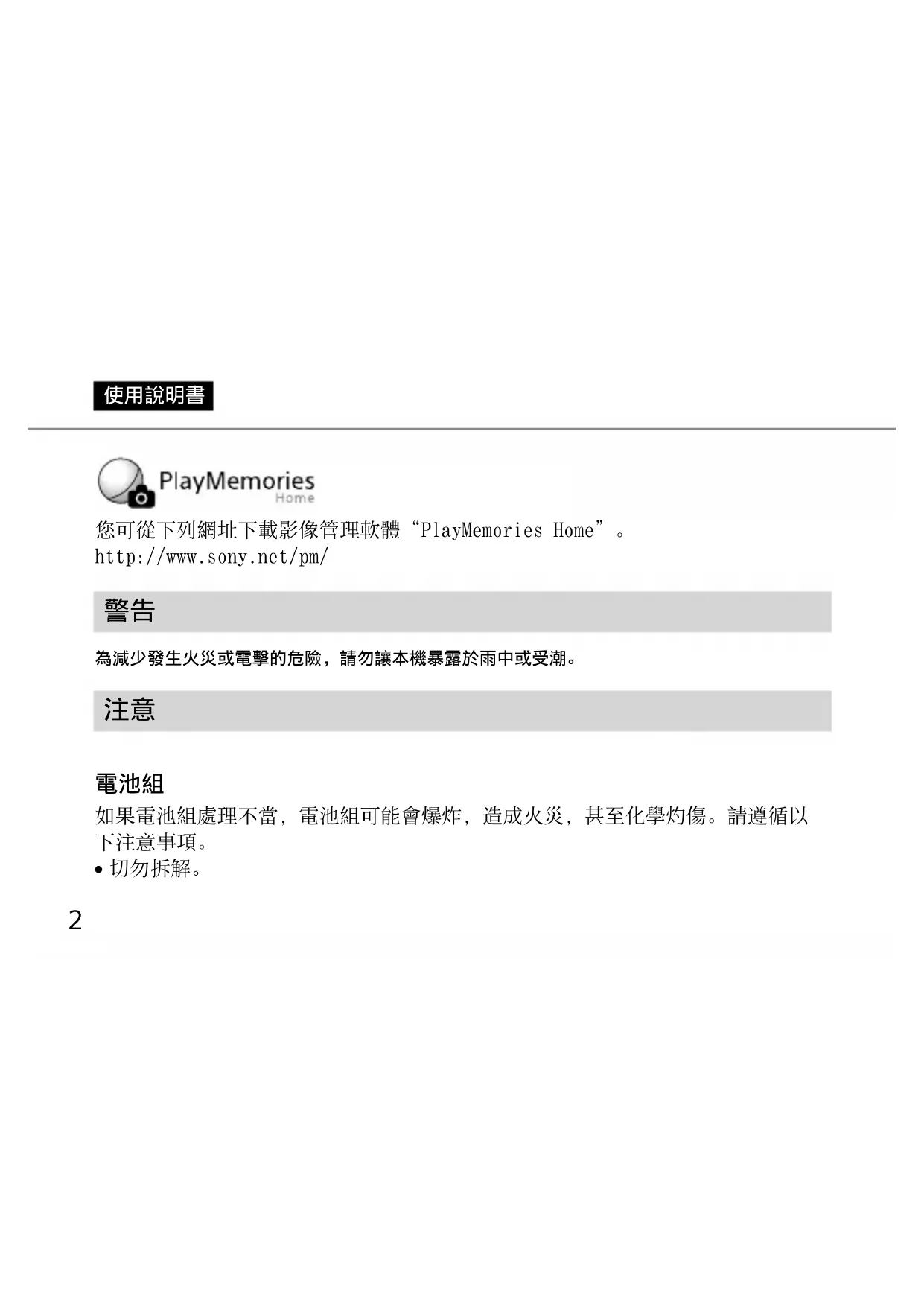請僅使用與Sony建議的相同或相等的電池類型進行更換。