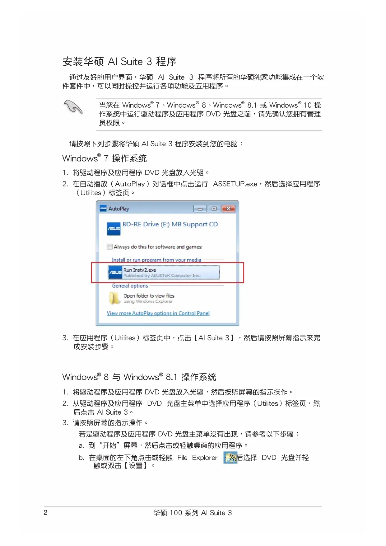 10 操 作系統中才會出現華碩 100 系列 AI Suite 3