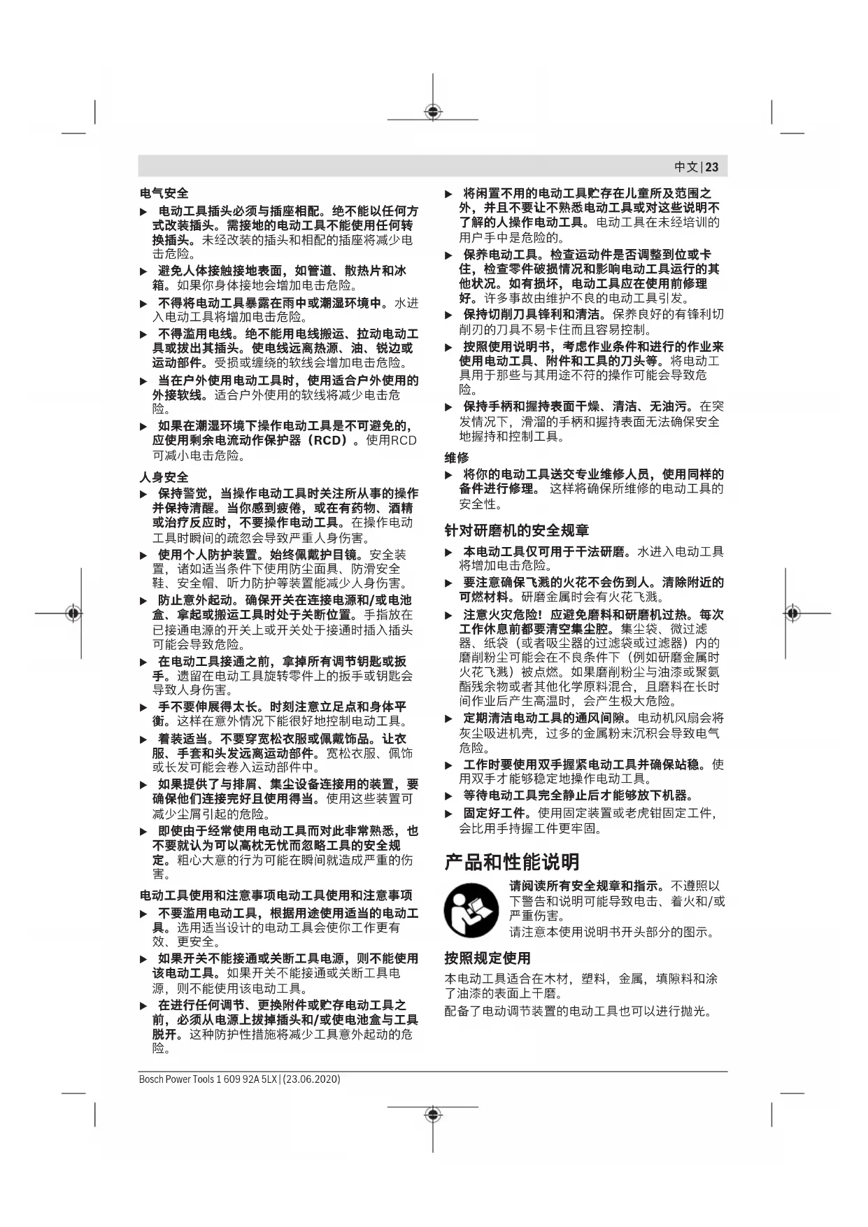 u 让儿童和旁观者离开后操作电动工具。注意力不 集中会使操作者失去对工具的控制。 1 609 92A 5LX | (23.06.2020) Bosch Power Tools中文 | 23