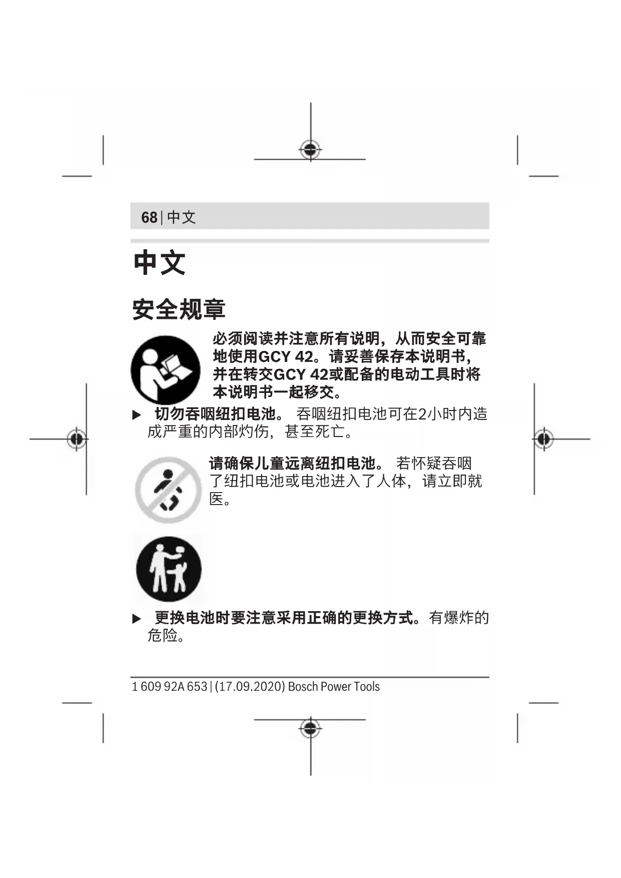 纽扣电池 (3V锂电池, CR2032) Bosch Power Tools 1 609 92A 653 | (17.09.2020)72 | 中文