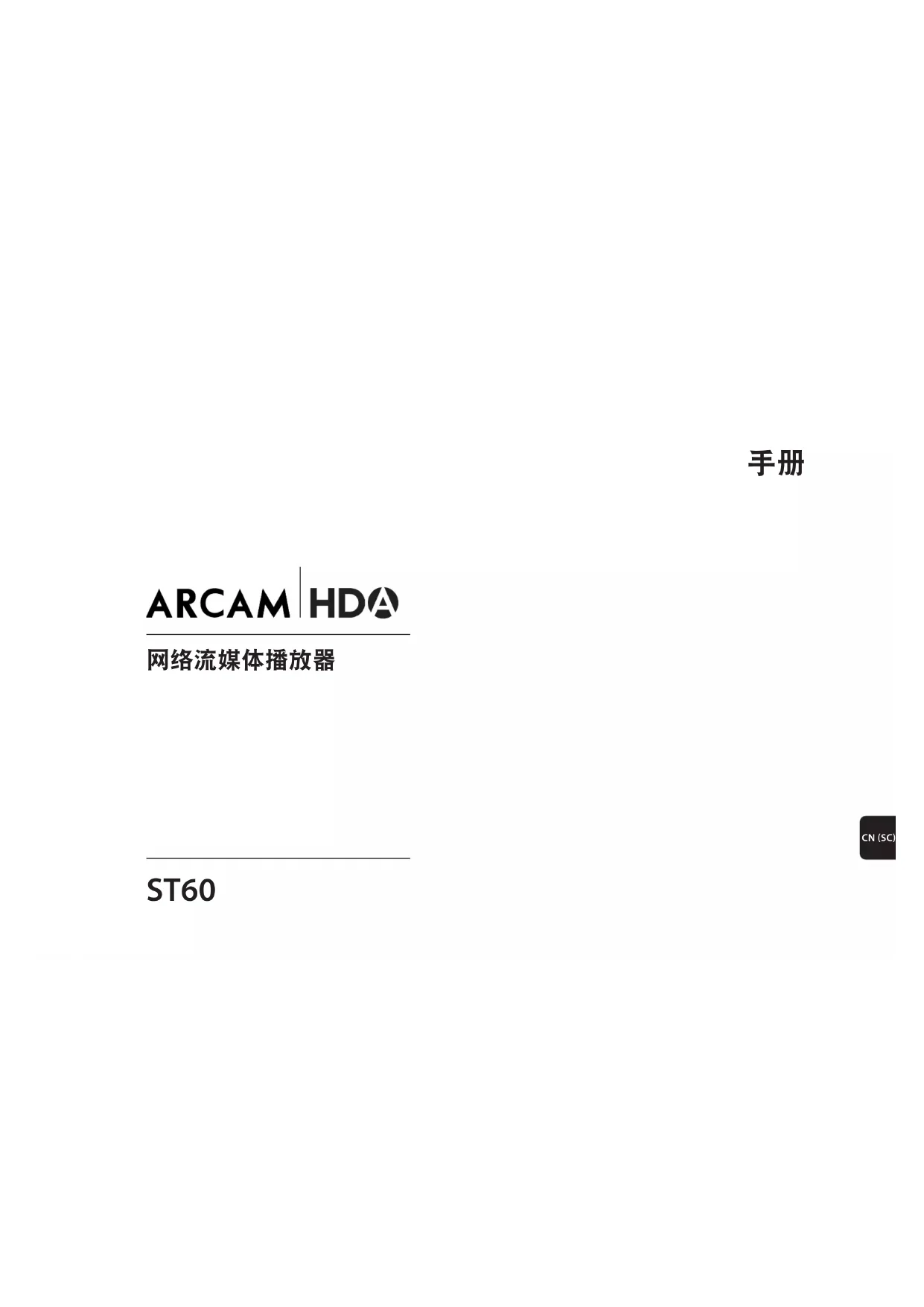 本手册是 streamer 的安装和使用指南,并包含其更多高级功能的相关信息。请参考下一页显示的目录列 表转到您想要了解的章节。 我们希望该产品能够给您带来多年的无故障操作体验。如果您的产品发生任何故障(这种情况很罕见), 或者您只是想要了解有关 Arcam 产品的更多信息,我们的经销商网络将很乐意为您效劳。您也可以通过 Arcam 网站 www.arcam.co.uk 了解更多信息。 ST60 研发团队CN (SC) CN-3 欢迎 CN-2 概述 CN-4 商标权声明 CN-5 前面板连接和控制 CN-6 后面板连接 CN-7 操作 CN-8 开机 CN-8 自动待机 CN-8 显示屏 CN-8 选择音频源 CN-8 数字音频输出 CN-8 模拟音频输出 CN-8 聆听 CN-8 浏览网络或 USB 媒体 CN-8 家庭自动化控制 CN-8 连接到网络 CN-9 Airplay 设置 CN-9 ChromeCast Built-In 设置 CN-9