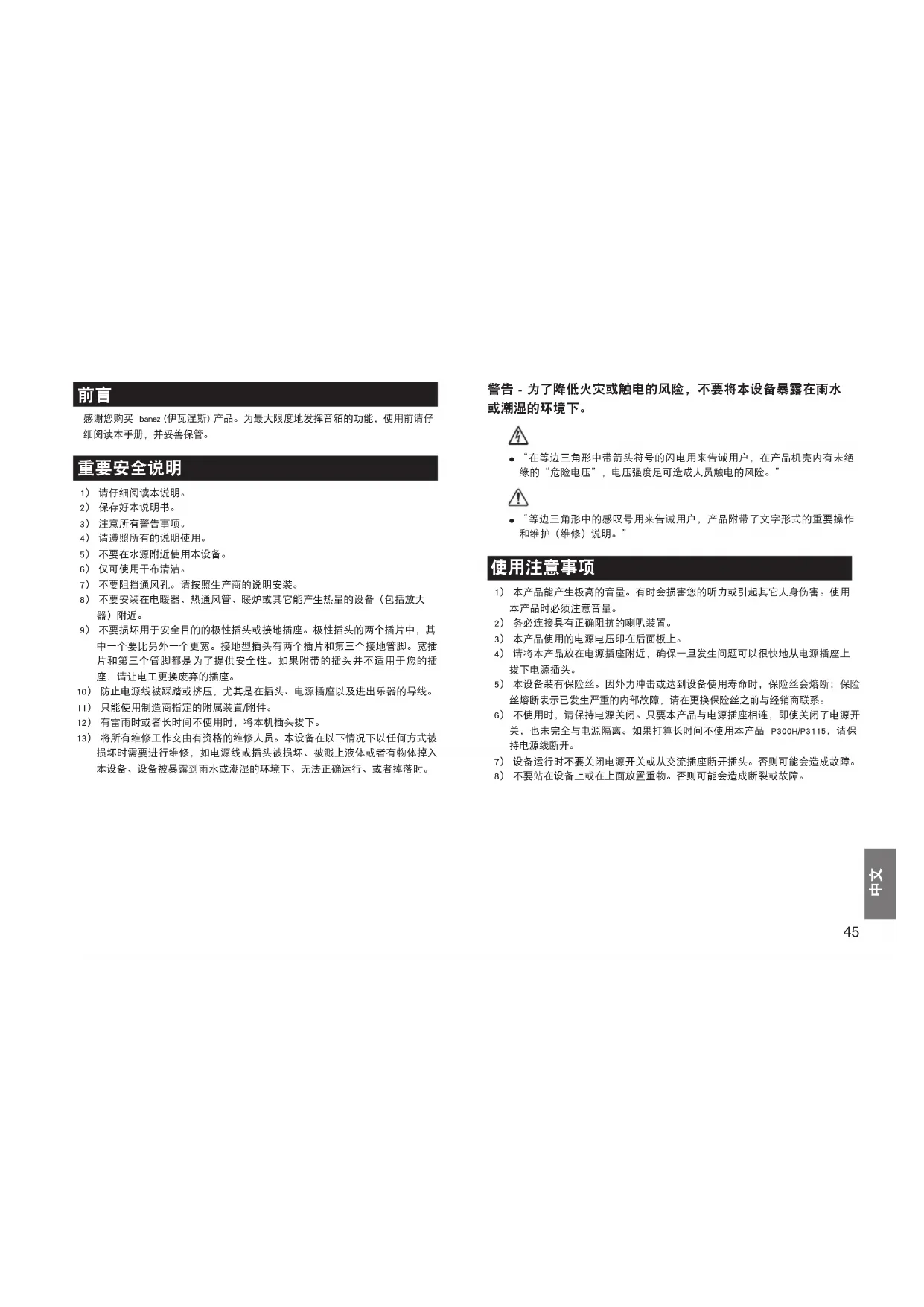 感谢您购买 Ibanez (伊瓦涅斯) 产品。为最大限度地发挥音箱的功能,使用前请仔 细阅读本手册,并妥善保管。