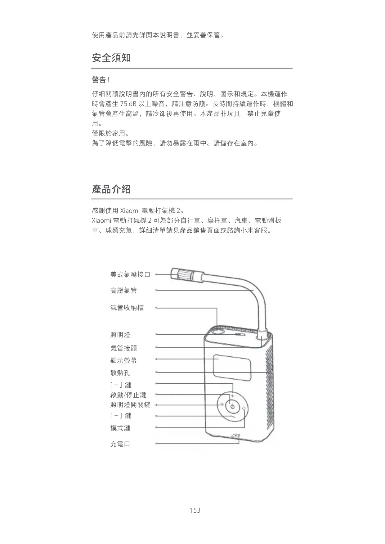 - 138 Xiaomi 電動打氣機 2 使用說明書 · 153