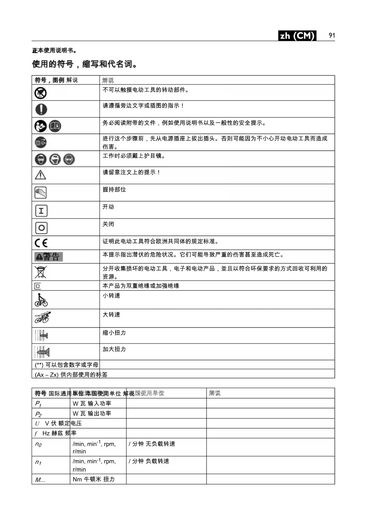 证明此电动工具符合欧洲共同体的规定标准。 本提示指出潜伏的危险状况。它们可能导致严重的伤害甚至造成死亡。 分开收集损坏的电动工具,电子和电动产品,並且以符合环保要求的方式回收可利用的