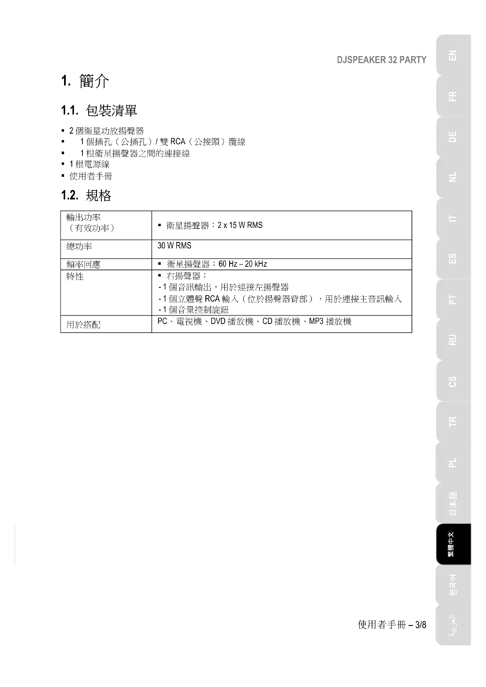 PC、電視機、DVD 播放機、CD 播放機、MP3 播放機DJSPEAKER 32 PARTY
