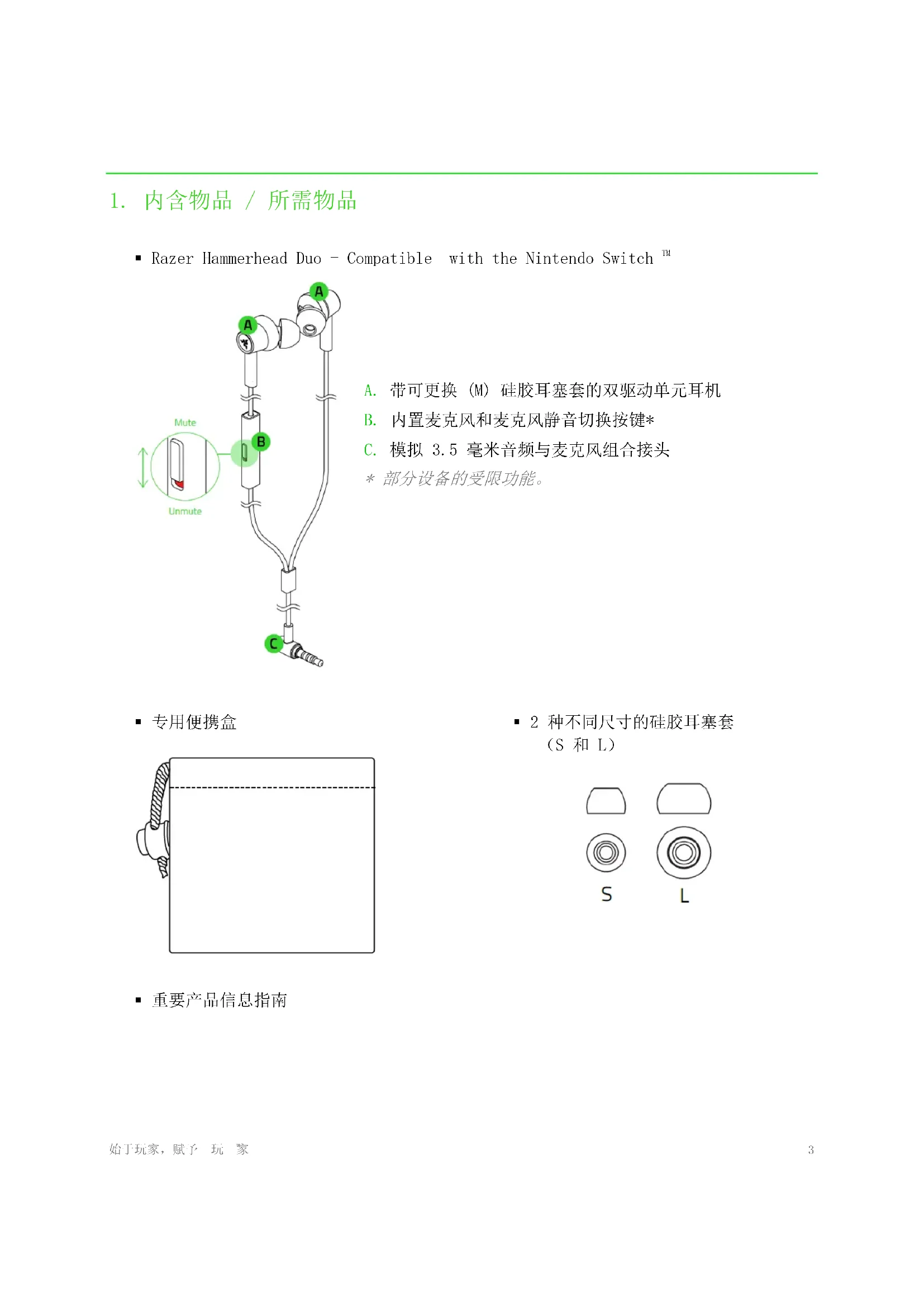 用户手册 Hammerhead Duo RAZER