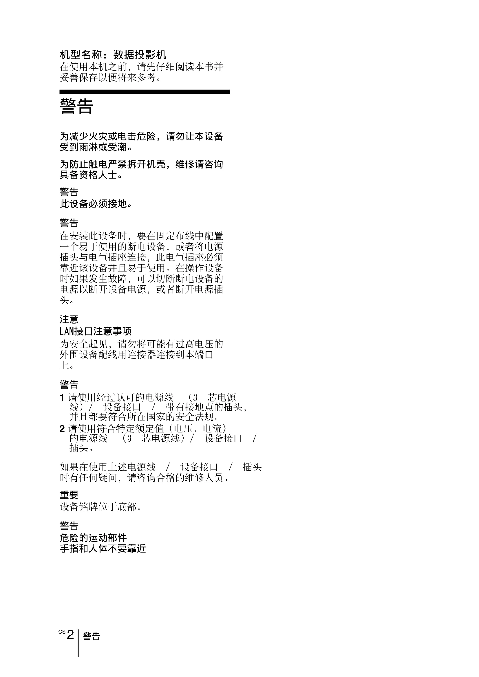 用户手册 VPLCX275 SONY