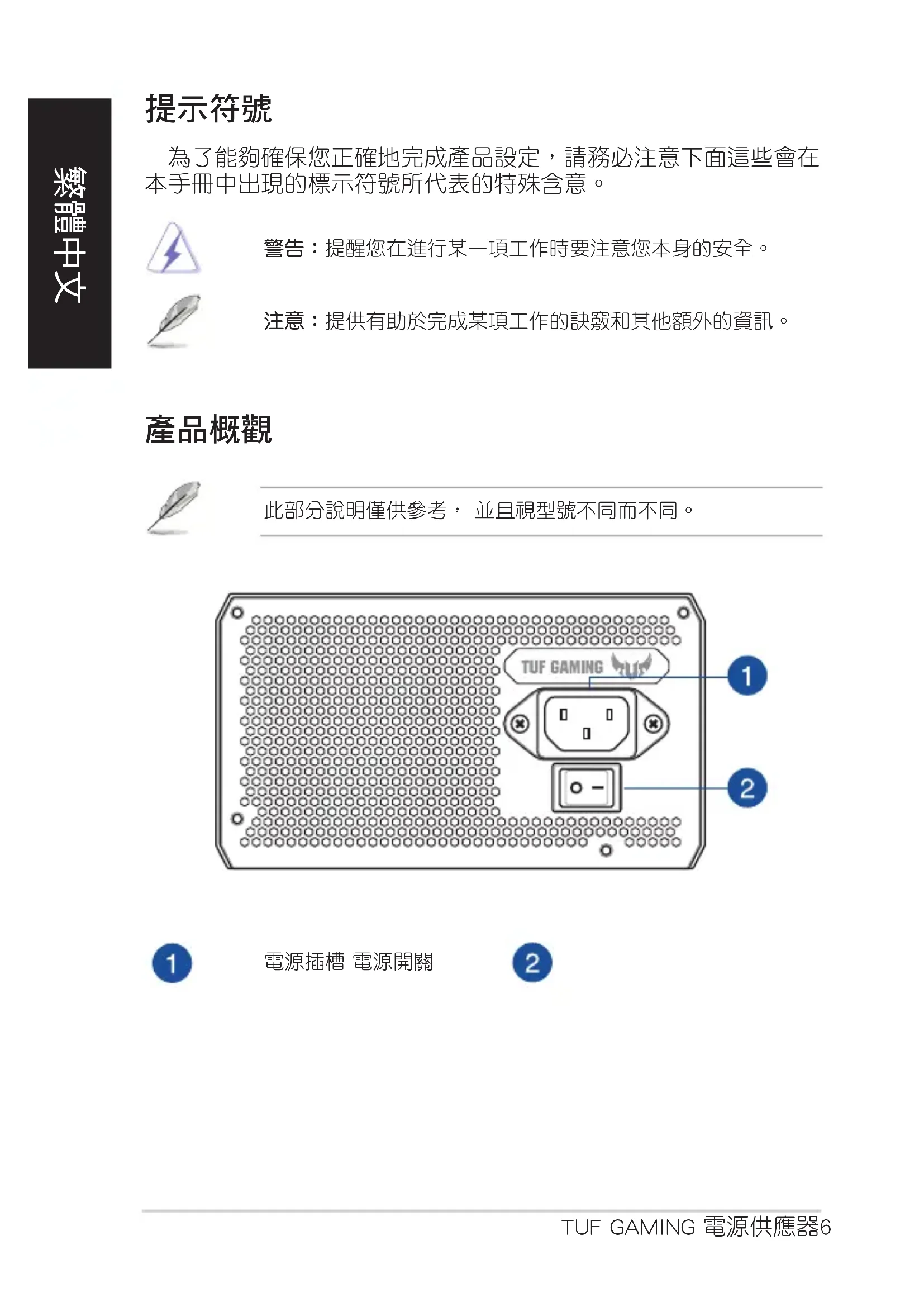 此部分說明僅供參考, 並且視型號不同而不同。TUF GAMING 電源供應器 7